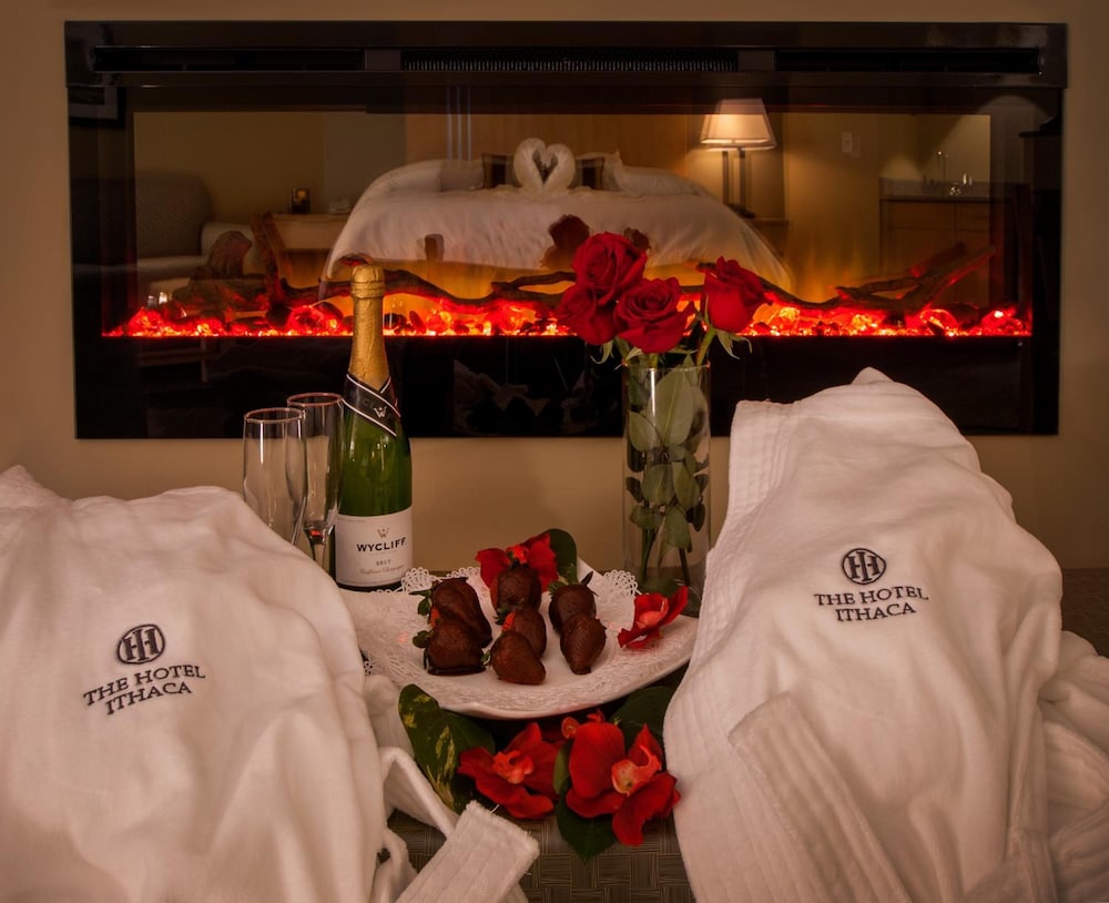 Hotel Ithaca ligger i Ithaca nära flygplatsen, med fem minuters promenadväg till både State Theatre of Ithaca och Ithaca Commons. Detta hotell ligger 1,8 km från Ithaca College och 2,3 km från Ithaca Falls Natural Area. Känn dig som hemma i ett av de 124 luftkonditionerade rummen med smart-tv. Gratis wi-fi gör att du kan hålla dig uppkopplad, och kabel-tv erbjuder underhållning. Privat badrum med dusch, gratis toalettartiklar och hårtorkar. På rummet finns telefon, skrivbord och gratis dagstidningar. Avstånd avrundas till närmsta decimal.