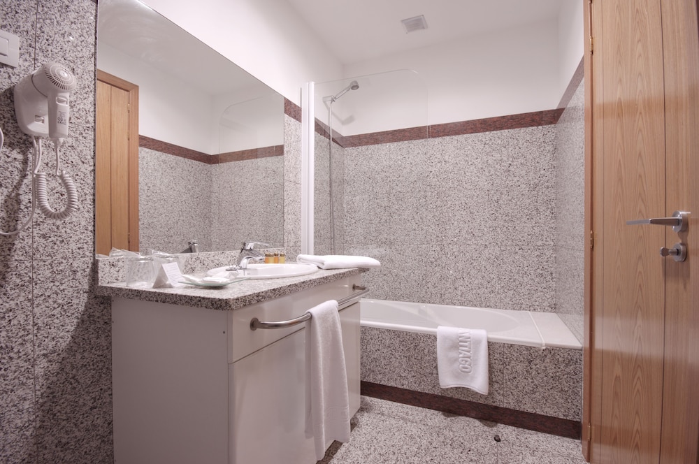 I Lugo hittar du Hotel Auditorio Santiago & SPA en fem minuters bilfärd från Lugos romerska bro och Lugos romerska bad. Detta hotell med exklusiv profil ligger 4,9 km från Porta do Bispo Aguirre och 5 km från Lugo Congress and Exhibiton Center. Känn dig som hemma i ett av de 60 rummen med minibarer och LCD-tv. Gratis wi-fi gör att du kan hålla dig uppkopplad, och satellit-tv erbjuder underhållning. Privat badrum med badkar eller dusch, gratis toalettartiklar och bidéer. På rummet finns telefon, skrivbord och mörkläggningsgardiner. Avstånd avrundas till närmsta decimal.