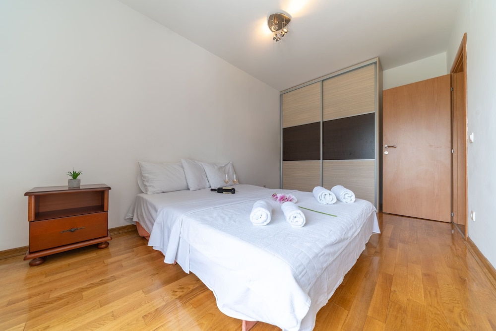 SMS Apartments ligger i hjärtat av Budva, en tio minuters promenad från både Trg Između Crkava och Slovenska Plaža turistby. Denna lägenhet ligger 22 km från Kotor Bay och 23,1 km från Porto Montenegro. Känn dig som hemma i ett av de 9 individuellt inredda rummen som har kök med kylskåp och ugn. Rummen har privata balkonger/terrasser. Gratis wi-fi ser till att du kan hålla dig uppkopplad, och en 45-tums platt-tv med kabelkanaler erbjuder all underhållning du behöver. På rummet finns vattenkokare och strykjärn/strykbräda. Städning erbjuds dagligen. Avstånd avrundas till närmsta decimal.