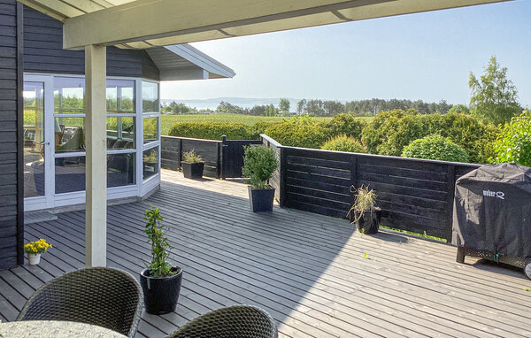 Njut av en avkopplande semester i detta semesterhus på halvön Mols, bara några minuter från viken Begtrup Vig. Här väntar en rofylld miljö med vidsträckt utsikt över fält och natur. Fly från vardagen och ladda batterierna. Stig in i det ljusa huset med sina eleganta möbler. Gör dig bekväm i sofforna i det mysiga vardagsrummet eller njut av utsikten genom de stora panoramafönstren. Köket med öppen planlösning inbjuder dig att laga läckra måltider tillsammans. Slå dig ner vid matbordet med utsikt över grönskan eller koppla av med en god bok i de bekväma fåtöljerna. Den privata bastun ger avkopplande värme när som helst på året.