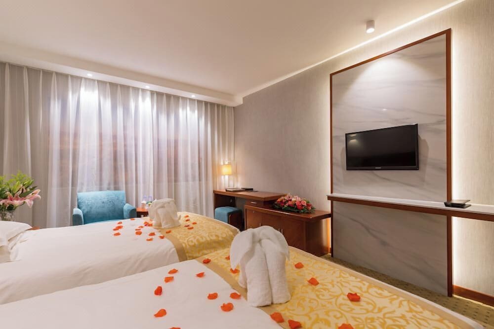 Ya'ao International Hotel Beijing ligger i Peking (i området Chaoyang), 4 minuter med bil från Tsinghua-universitetet och 10 minuter från Förbjudna staden. Detta hotell i lyxstil ligger 12,1 km från Wangfujing Street och 11,7 km från Förbjudna staden. Känn dig som hemma i ett av de 450 rummen med minibarer och platt-tv. Med gratis fast internetanslutning och wi-fi håller du dig uppkopplad, medan kabelkanaler står för underhållningen. Privat badrum med dusch, gratis toalettartiklar och hårtorkar. På rummet finns telefon, värdeförvaringsskåp och skrivbord. Avstånd avrundas till närmsta decimal.