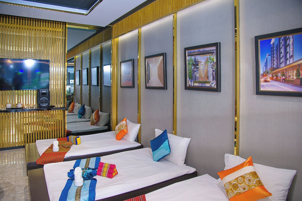 O2 Grand Suvarnabhumi Airport placerar dig i Bang Phli-området Bang Chalong, med 2 minuters körväg till Huachiew Chalermprakiet University och 7 minuter till King Power Srivaree köpcentrum. Detta hotell ligger 8,9 km från Lakewood Golf and Country Club och 8,9 km från Market Village Suvarnabhumi. Känn dig som hemma i ett av de 194 luftkonditionerade rummen med kylskåp och LED-tv. Rummen har privata balkonger. Gratis wi-fi gör att du kan hålla dig uppkopplad, och digital-tv erbjuder underhållning. Privat badrum med dusch, regndusch och gratis toalettartiklar. Avstånd avrundas till närmsta decimal.
