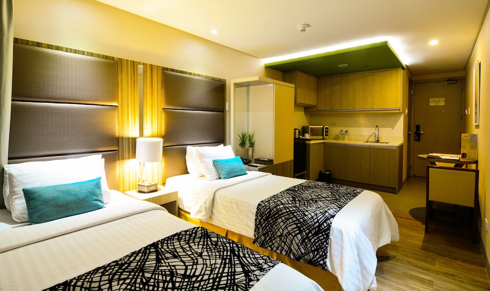 Gäster har tillgång till bland annat business-service dygnet runt, gratis dagstidningar i lobbyn och kemtvätt/tvättjänster. Planerar du ett event i Makati? På detta lägenhetshotell finns det event- och konferensutrymmen på upp till 282 kvadratmeter, däribland konferenscenter och 7 mötesrum. Gäster erbjuds flygtransfer tur/retur mot en avgift (tillgänglig dygnet runt), och gratis parkeringsservice finns på plats. Skäm bort dig med ett besök på deras spa, som erbjuder bland annat massage, kroppsbehandlingar och ansiktsbehandlingar. Här har du bland annat tillgång till utomhuspool och fitnesscenter. Boendet har även gratis wi-fi, conciergetjänster och bankettsal. Du kan avnjuta en utsökt middag på Azzurro Bistro & Bar, deras restaurang vid poolen som specialiserar sig på medelhavsköket, eller stanna på rummet med rumsservice (under begränsade tider). Frukostbuffé serveras dagligen mot en avgift från 06.00 till 10.00.Du kommer att ombes att betala följande avgifter på boendet – avgifterna kan inkludera tillämpliga skatter: