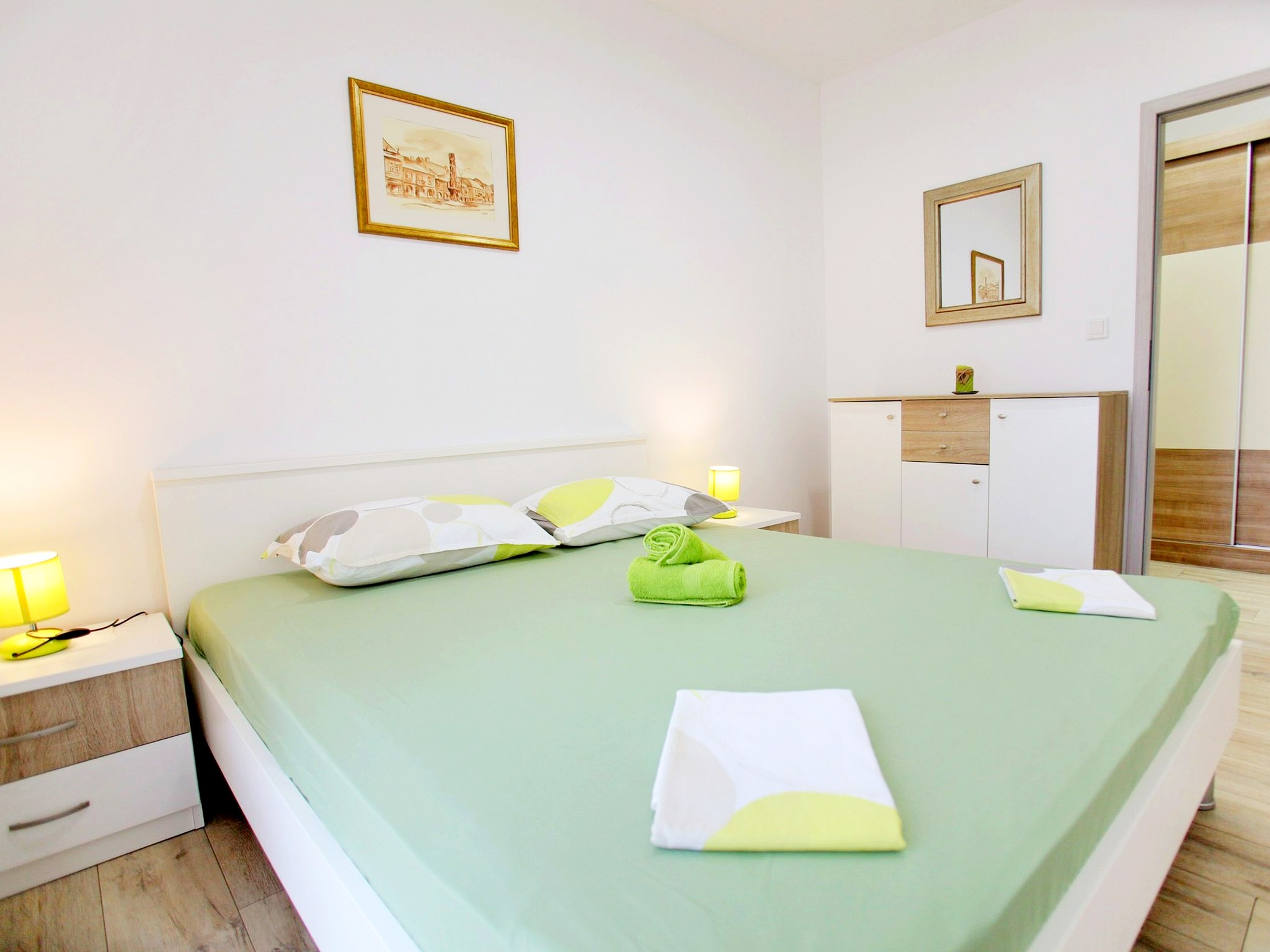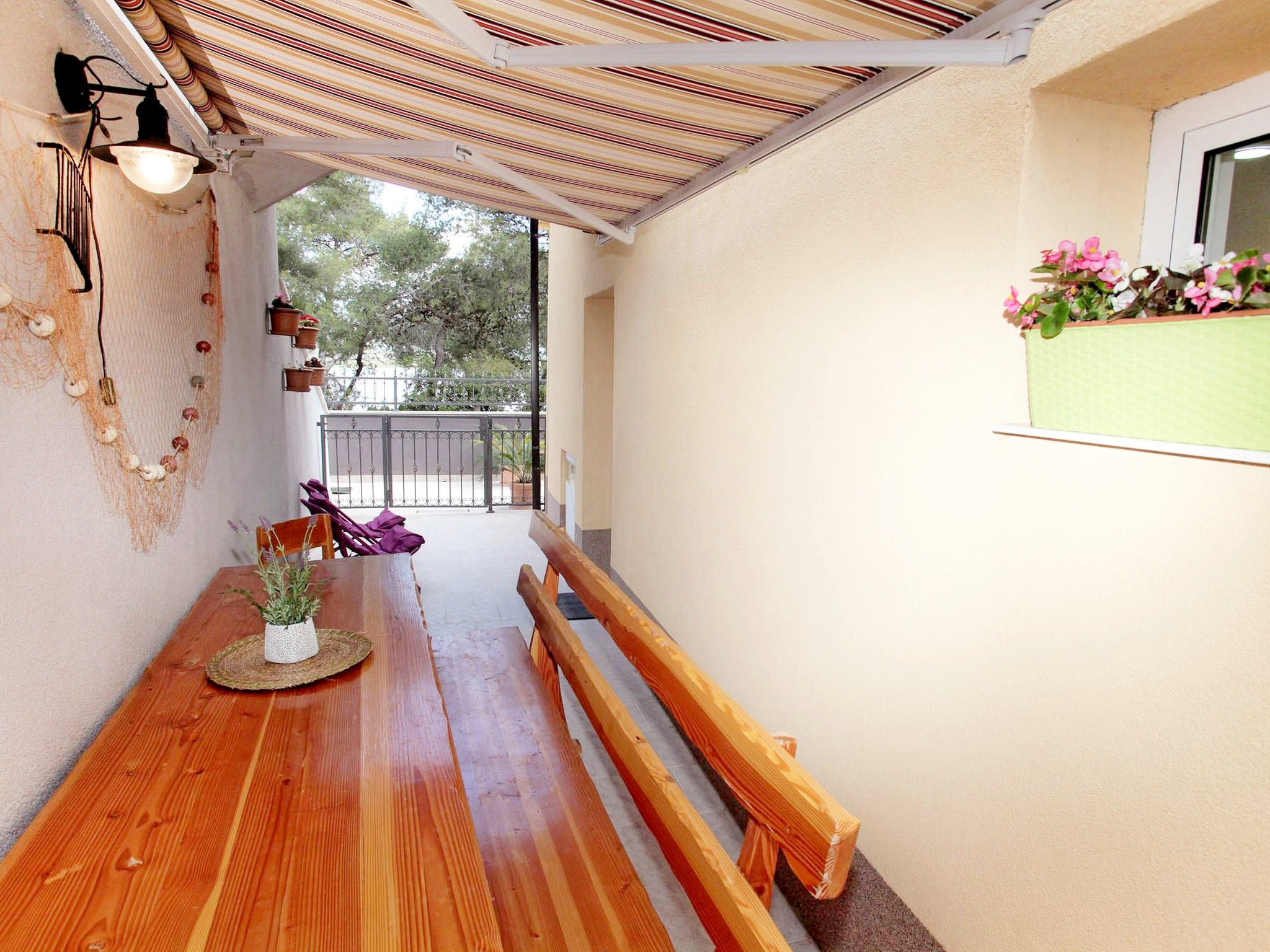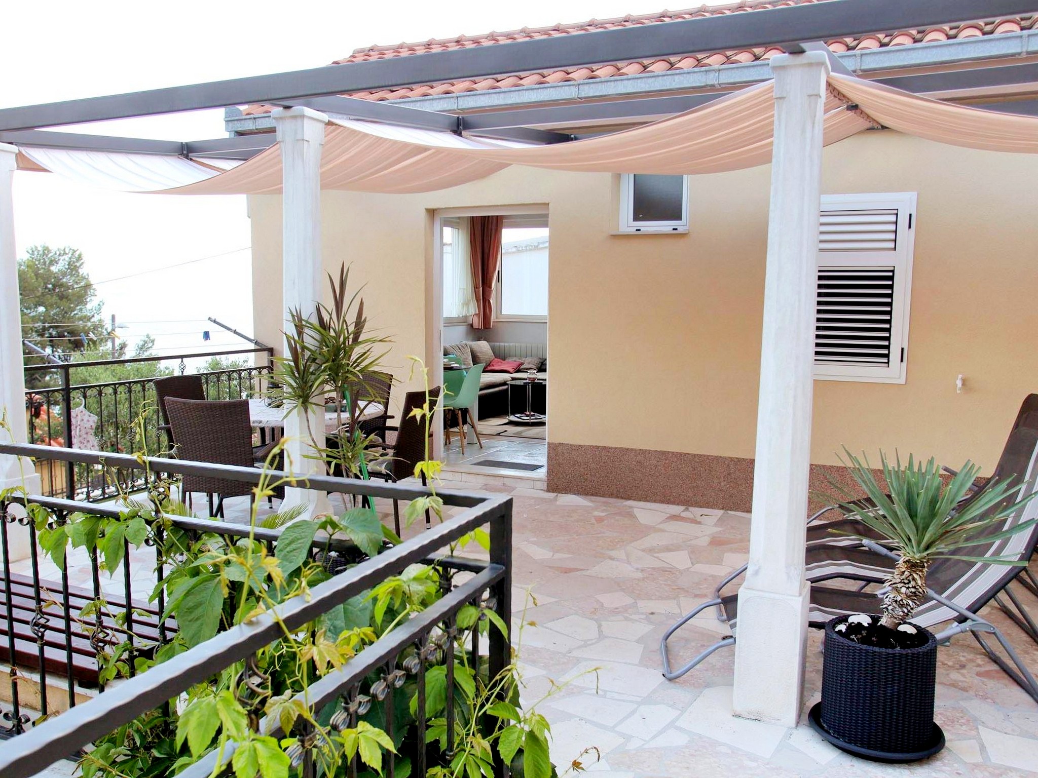 Detta lägenhetskomplex har ett lugnt läge i Trogir, på ön iovo, bara ett stenkast från stranden och en kort bilresa från affärer, restauranger, gallerier och kollektivtrafik. Komplexet erbjuder tre lägenheter, en för två gäster och två standardlägenheter. Medan lägenheten för två personer och en standardlägenhet delar våning och terrass, är de separata enheter. Gästerna har tillgång till parkering på plats. Alla lägenheter har kök, sovrum med dubbelsängar, central luftkonditionering, badrum med dusch eller badkar, satellit-TV och en privat balkong eller terrass. Sängkläder och handdukar tillhandahålls kostnadsfritt. Eftersom det inte finns någon reception dygnet runt, ombeds gästerna vänligen att ange sin beräknade ankomsttid minst 48 timmar i förväg.