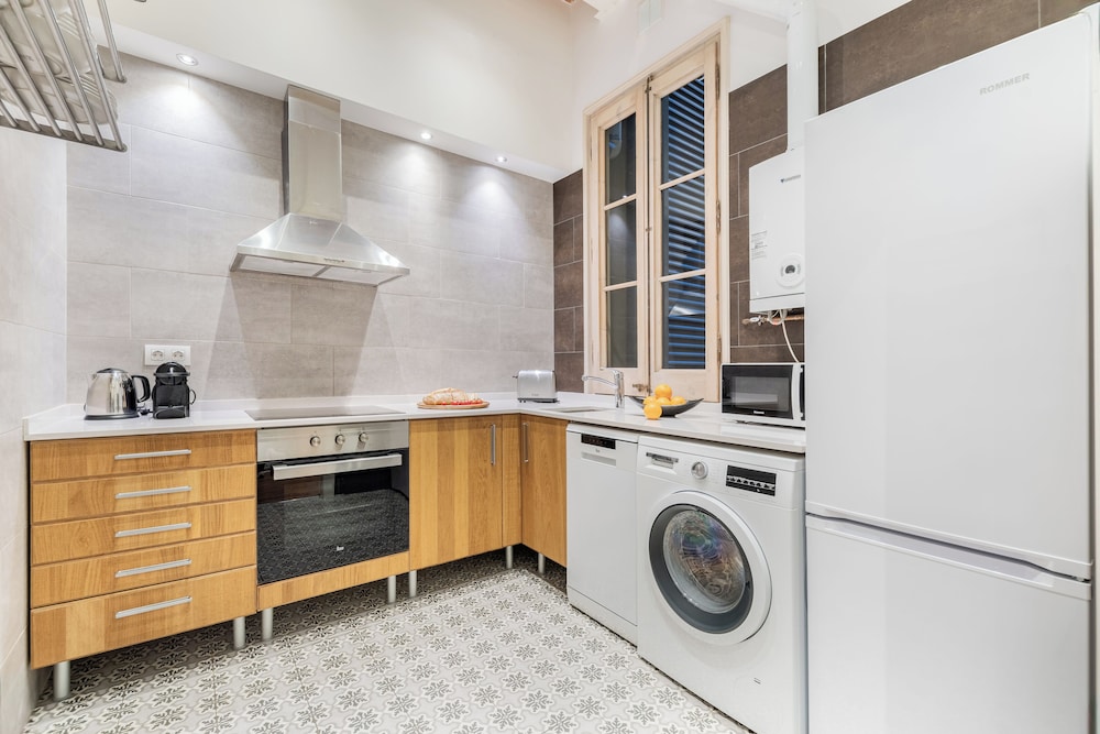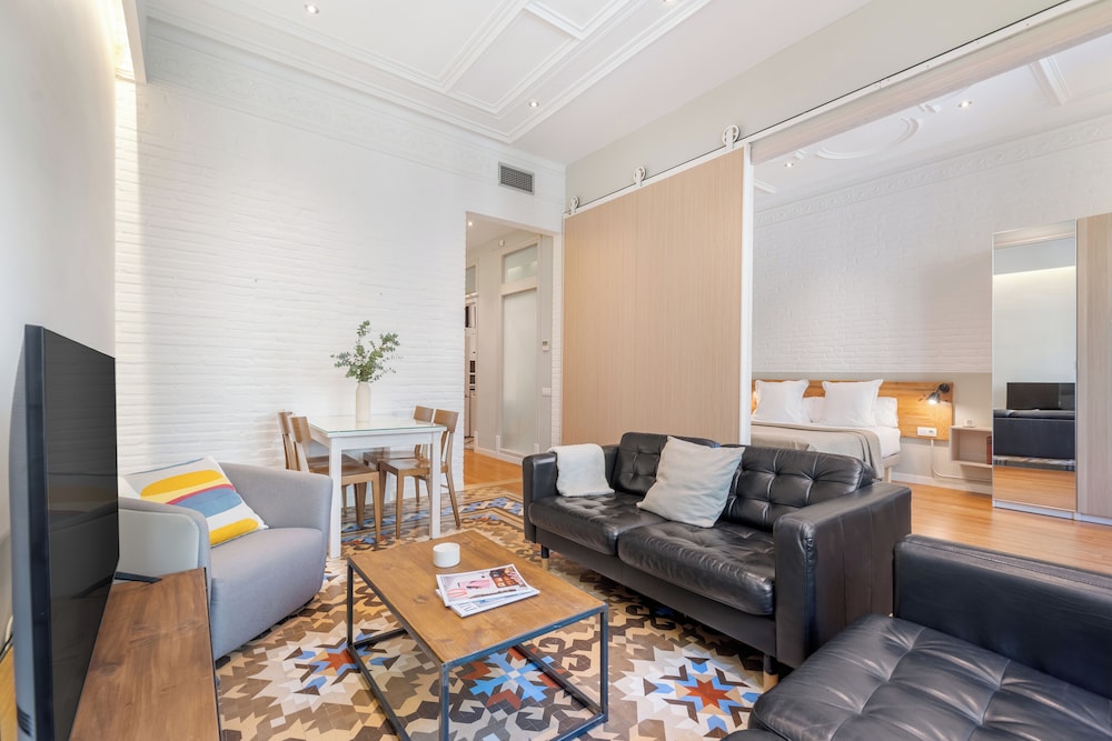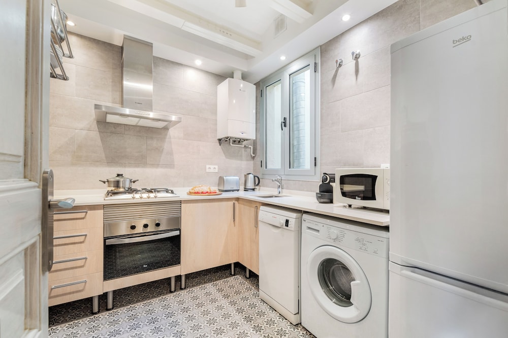 Fuster Apartments By Aspasios ligger i Barcelona (i området Eixample), ett stenkast från Casa Llopis Bofill och Salesianerkyrkan och -klostret. Denna lägenhet ligger 0,3 km från Palau Macaya och 0,6 km från Mercat de la Concepció. Känn dig som hemma i ett av de 10 individuellt inredda rummen som har kök med stor kyl/frys och ugn. Gratis wi-fi gör att du kan hålla dig uppkopplad, och en platt-tv med digitalkanaler erbjuder all underhållning du behöver. På rummet finns värdeförvaringsskåp och mikrovågsugnar. Städning erbjuds en gång per vistelse. Avstånd avrundas till närmsta decimal.