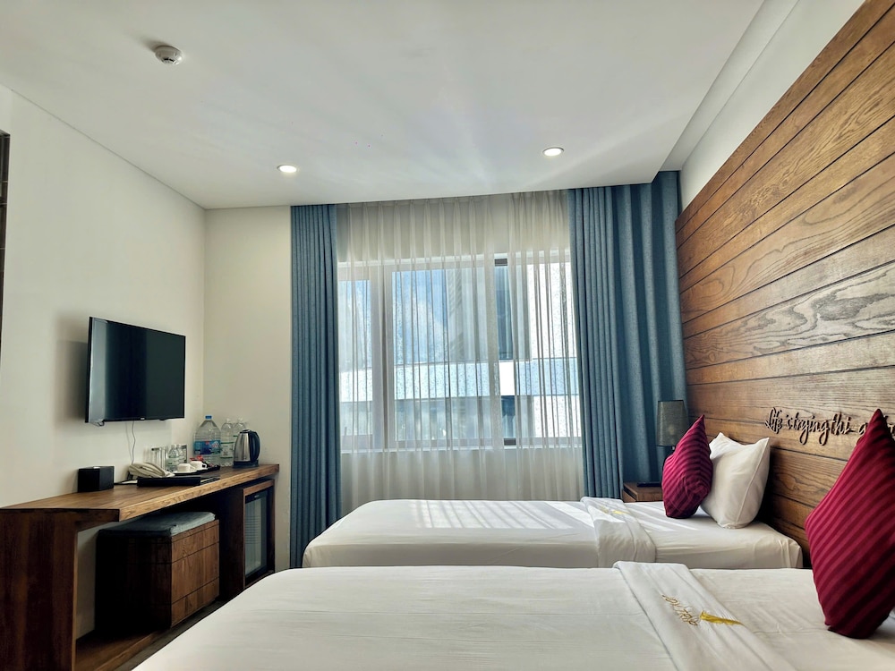 Gäster har tillgång till bland annat kemtvätt/tvättjänster, reception (öppen dygnet runt) och bagageförvaring. Planerar du ett event i Nha Trang? På detta hotell finns det event- och konferensutrymmen på upp till 10 kvadratmeter, däribland konferenscenter och 3 mötesrum. Gäster erbjuds flygtransfer tur/retur mot en avgift (tillgänglig dygnet runt), och avgiftsfri parkering finns på plats. Skäm bort dig med ett besök på deras spa, som erbjuder bland annat massage, kroppsbehandlingar och ansiktsbehandlingar. Här har du tillgång till bland annat utomhuspool, bastu och fitnesscenter. Boendet har även gratis wi-fi, conciergetjänster och bankettsal. Njut av lokala och internationella rätter på Joy Trip, en av de 2 restauranger detta hotell ståtar med, eller stanna på rummet och utnyttja dess rumsservice dygnet runt. Du kan även hitta lättare måltider på deras kafé. Avsluta dagen med en drink på boendets bar eller bar vid poolen. Frukostbuffé serveras dagligen mot en avgift från 06.00 till 09.30. LOCALIZE- Avgift för frukostbuffé: VND 150000 för vuxna och VND 100000 för barn