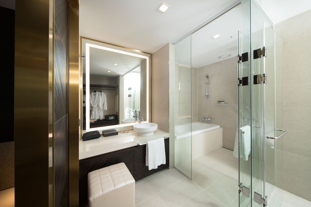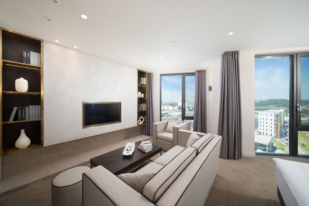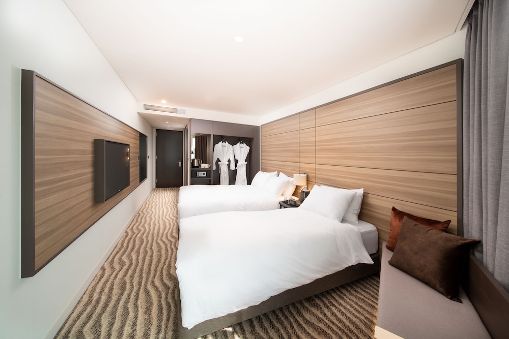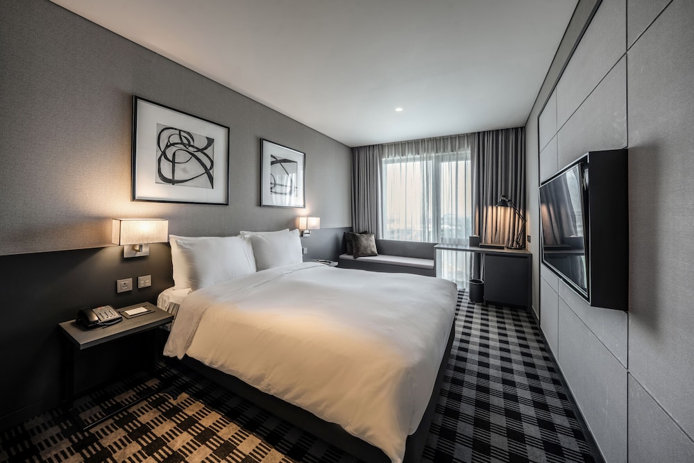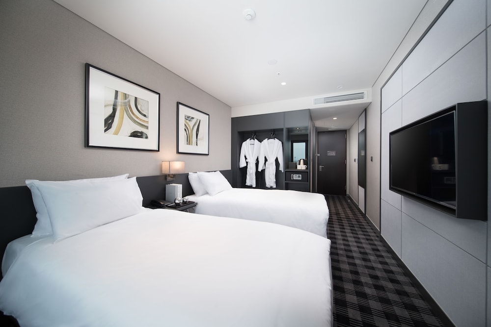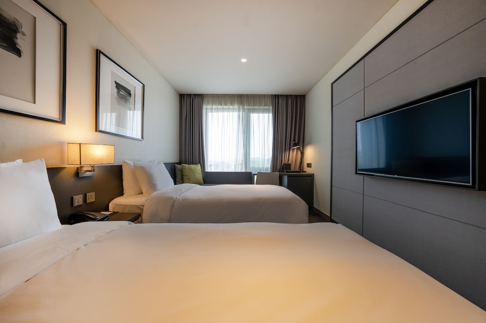 Hotel Marinabay Seoul ligger i Gimpo i affärskvarteren, en 2 minuters bilfärd från Hyundai Premium Outlet och 7 minuter från Lotte Mall Gimpo Airport. Detta hotell ligger 22,3 km från Myeongdong Street och 22,4 km från Gyeongbokgung-palatset. Känn dig som hemma i ett av de 424 rummen med kylskåp och platt-tv. Gratis wi-fi gör att du kan hålla dig uppkopplad, och kabel-tv erbjuder underhållning. Privat badrum med dusch, hårtorkar och badrockar. På rummet finns värdeförvaringsskåp och skrivbord. Städning erbjuds dagligen. Avstånd avrundas till närmsta decimal.