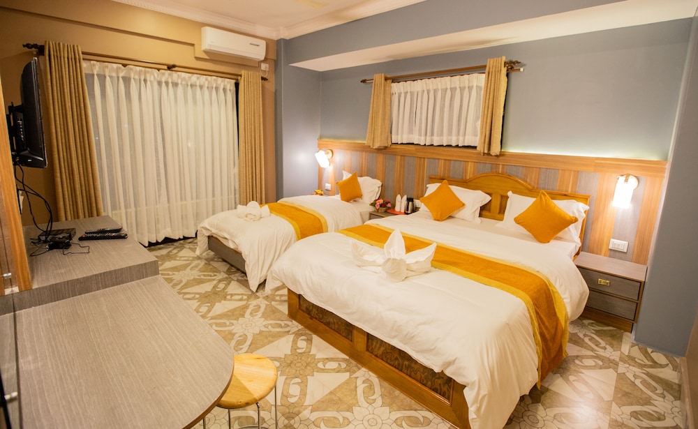 Hotel Visitors Inn, Pokhara ligger i Pokhara, en 1 minuters promenad från Phewas sjö och 5 minuter från Ratna Mandir. Detta hotell ligger 0,8 km från Tal Barahi tempel och 2 km från Pokhara Museum. Känn dig som hemma i ett av de 22 luftkonditionerade rummen med LED-tv. Sängen har bäddmadrass och sängtillbehör av högsta kvalitet. Rummen har privata balkonger/terrasser. Med gratis fast internetanslutning och wi-fi håller du dig uppkopplad, medan digitalkanaler står för underhållningen. Privat badrum med dusch, regndusch och gratis toalettartiklar. Avstånd avrundas till närmsta decimal.
