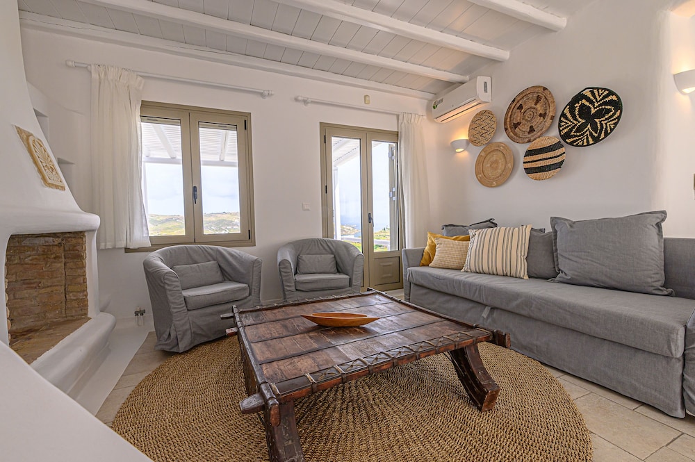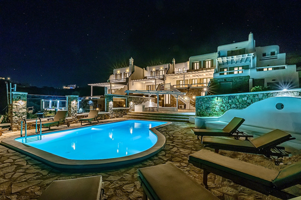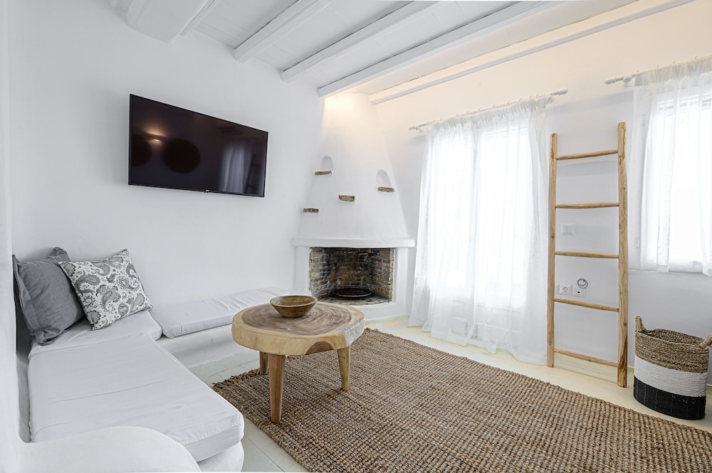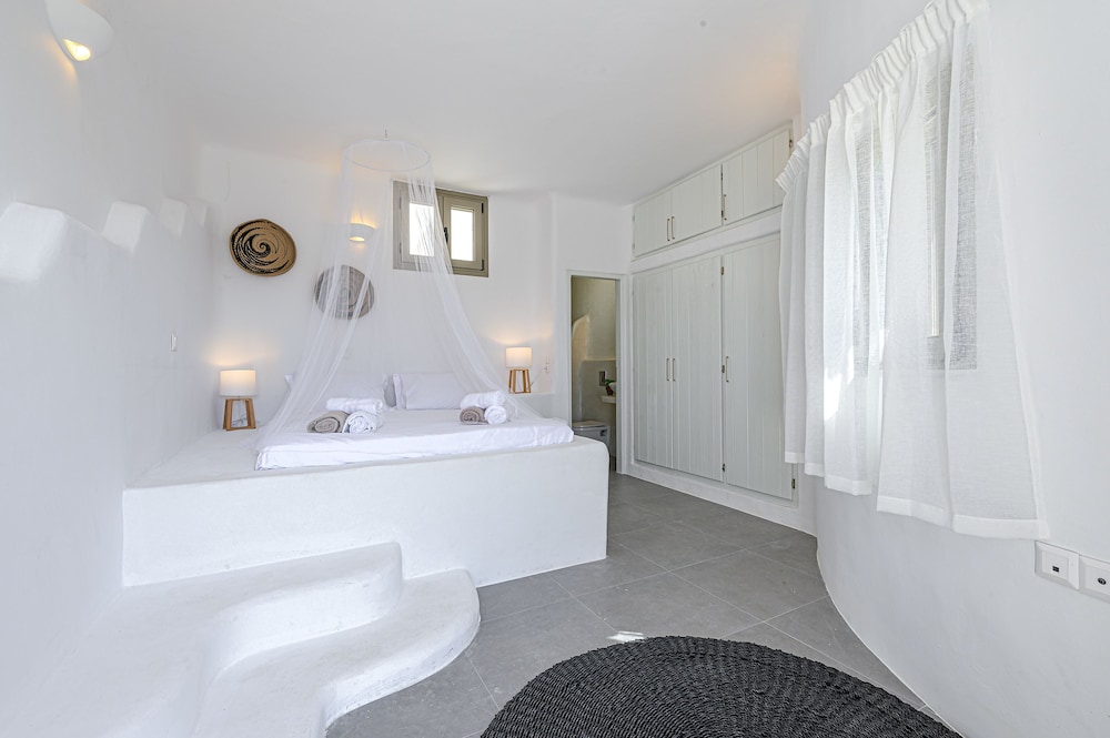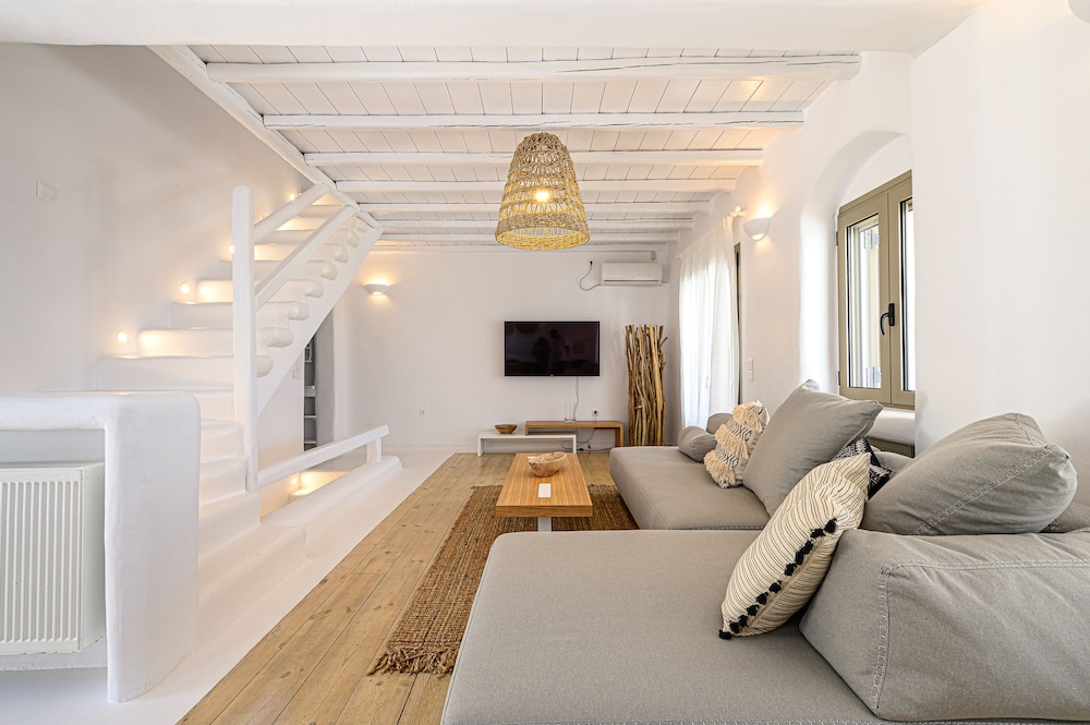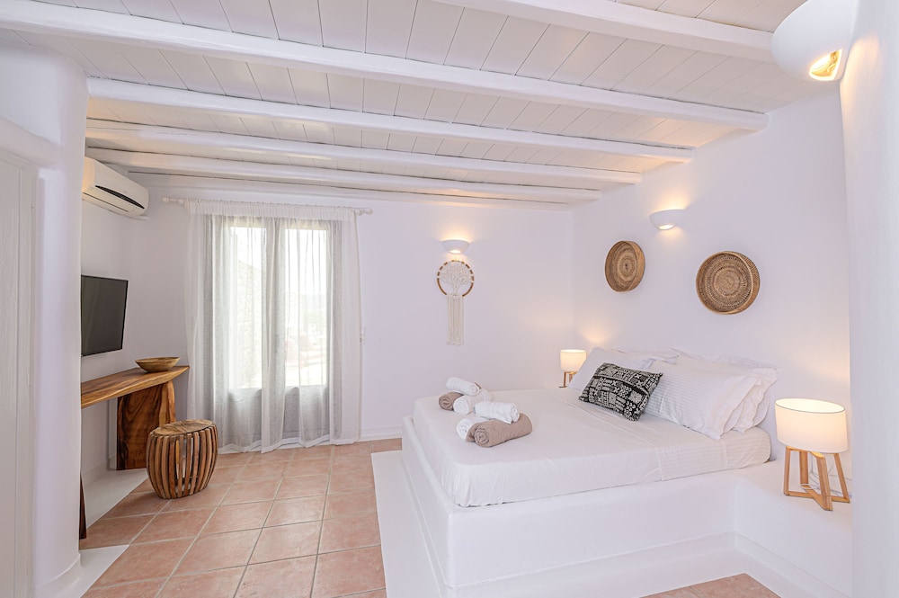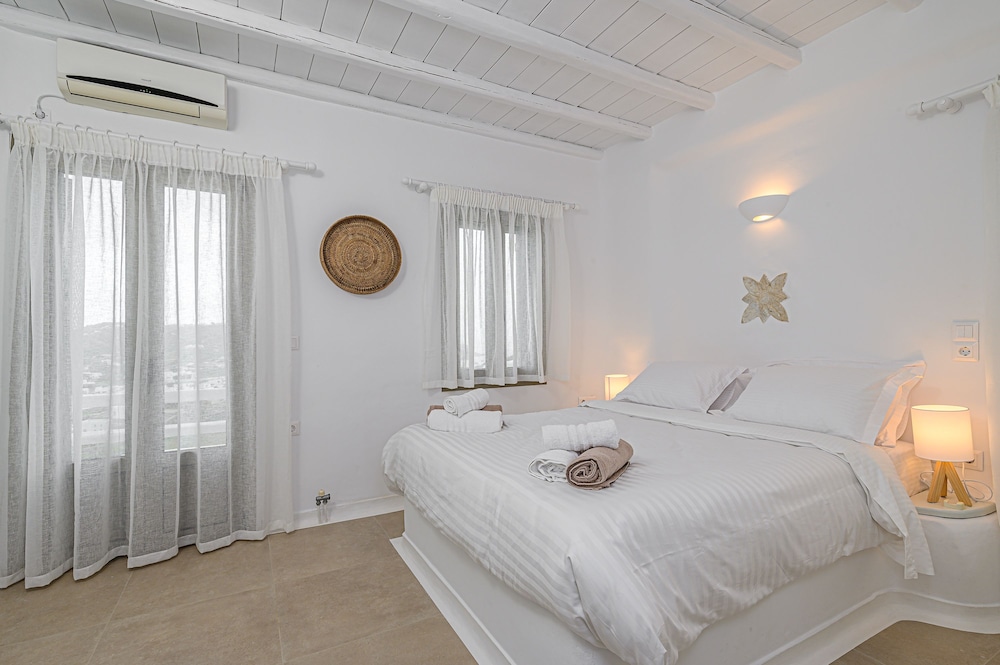 9 Muses Villas Mykonos ligger i Mykonos nära stranden, en fem minuters bilfärd från och Psarou strand och Mykonos väderkvarnar. Denna villa ligger 3,7 km från Panagía Paraportianíns kyrka och 4,2 km från Ornos strand. Skäm bort dig och bo i ett av 5 individuellt inredda rum med eldstäder och platt-tv. Sängen har bäddmadrass och egyptiska bomullslakan. Kök utrustat med stor kyl/frys, ugn och spishäll. Gratis wi-fi gör att du kan hålla dig uppkopplad. Avstånd avrundas till närmsta decimal.