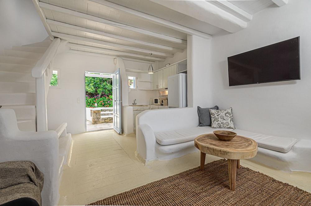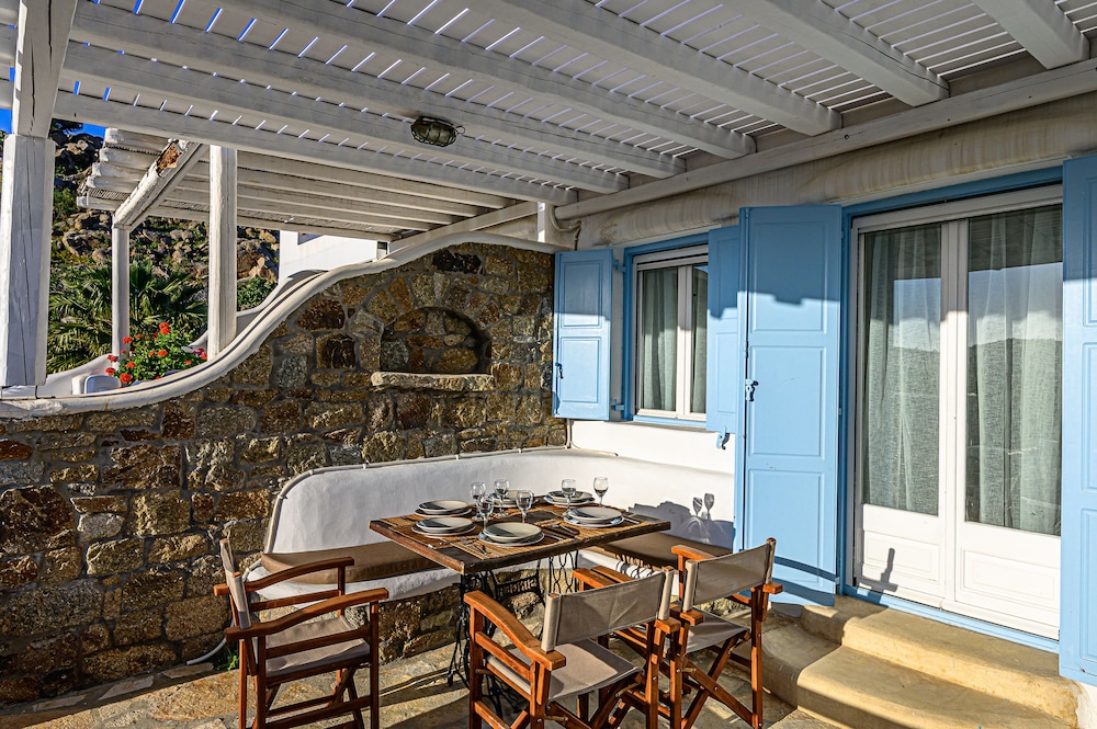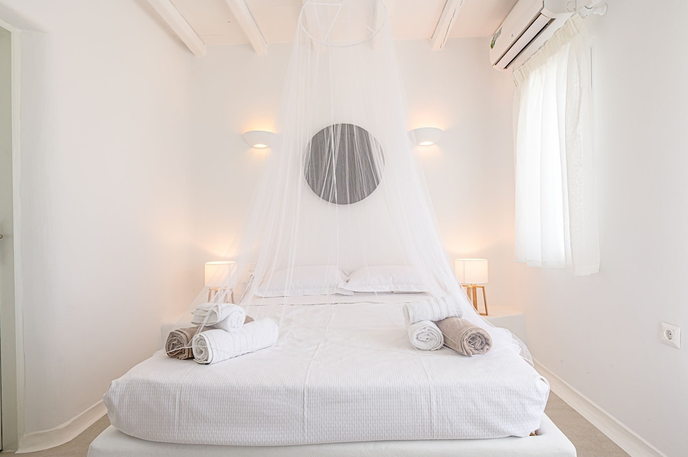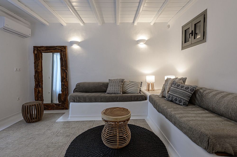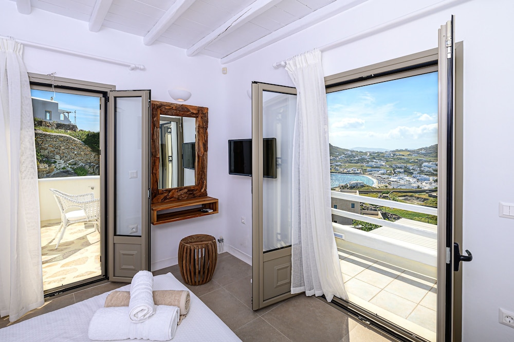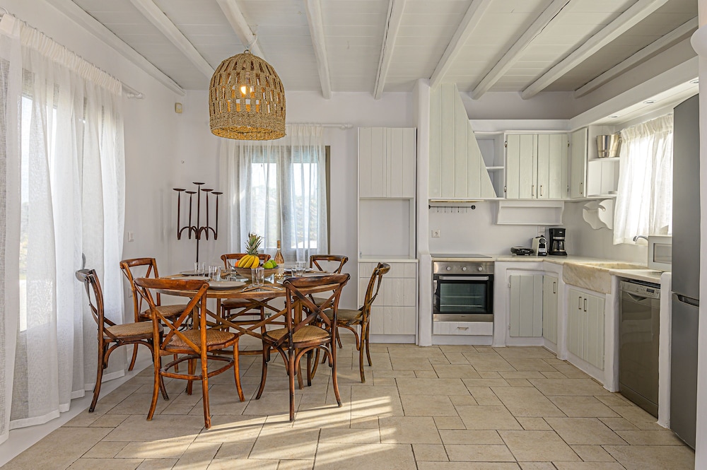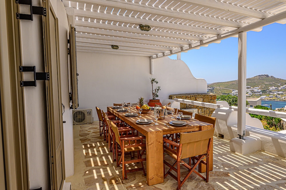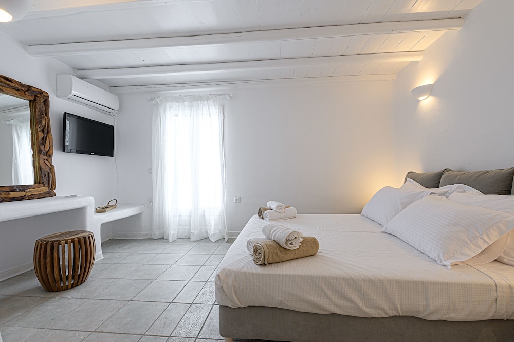 9 Muses Villas Mykonos ligger i Mykonos nära stranden, en fem minuters bilfärd från och Psarou strand och Mykonos väderkvarnar. Denna villa ligger 3,7 km från Panagía Paraportianíns kyrka och 4,2 km från Ornos strand. Skäm bort dig och bo i ett av 5 individuellt inredda rum med eldstäder och platt-tv. Sängen har bäddmadrass och egyptiska bomullslakan. Kök utrustat med stor kyl/frys, ugn och spishäll. Gratis wi-fi gör att du kan hålla dig uppkopplad. Avstånd avrundas till närmsta decimal.