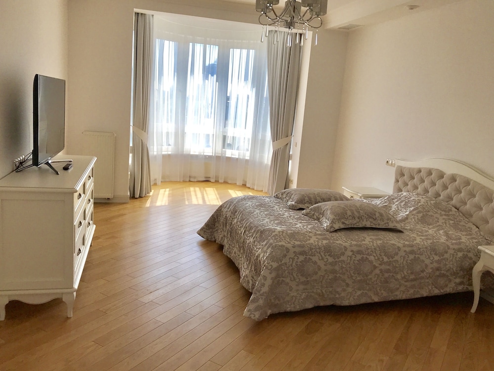 Luxury Condominium. Kiev center. ligger i Kiev (i området Shevchenkivs'kyi-distriktet), ett stenkast från både Chresjtjatyk-gatan och Center of all Pointers of Ukraine. Denna lägenhet ligger 0,1 km från Självständighetstorget och 0,1 km från Globus-shoppingcentret. Känn dig som hemma i ett av de 6 rummen med kök. Avstånd avrundas till närmsta decimal.