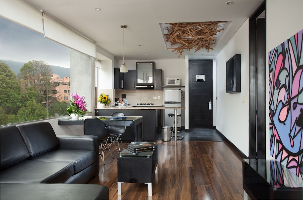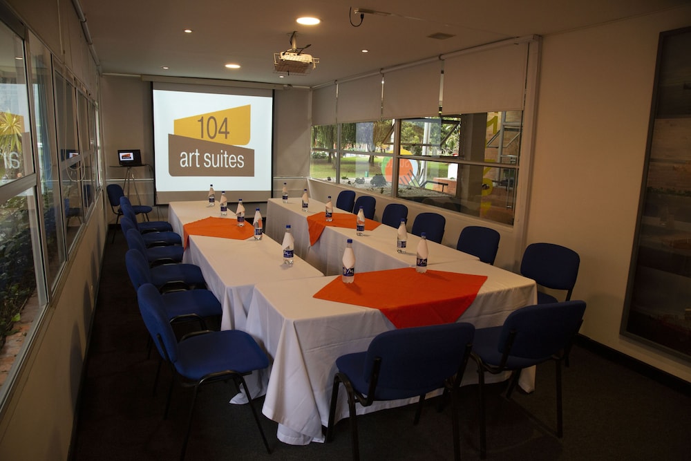 104 Art Suites ligger i Bogotá (i området Usaquén), fem minuters bilfärd från Unicentro Bogotá och World Trade Center. Detta hotell med familjevänlig profil ligger 3,1 km från Country Club De Bogota och 4,2 km från Andino köpcentrum. Känn dig som hemma i ett av de 27 individuellt möblerade rummen med MP3-dockningsstationer och platt-tv. Sängen har bäddmadrass, duntäcken och sängtillbehör av högsta kvalitet. Gratis wi-fi gör att du kan hålla dig uppkopplad, och satellit-tv erbjuder underhållning. Privat badrum med hårtorkar och badrockar. Avstånd avrundas till närmsta decimal.