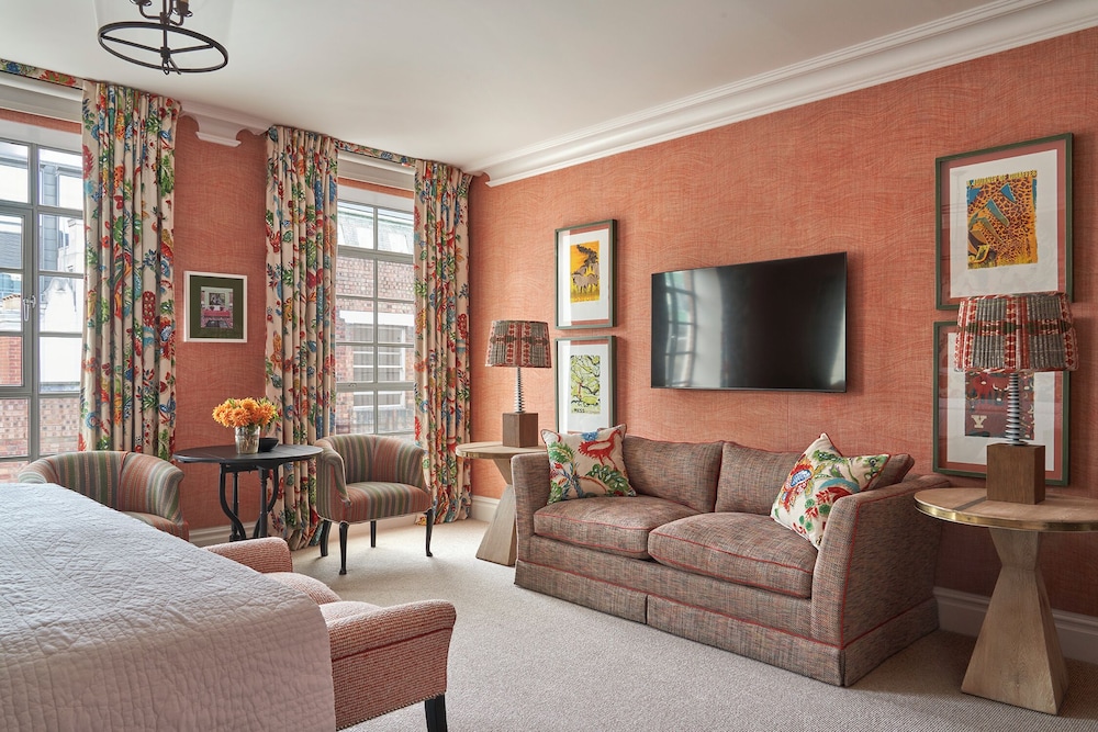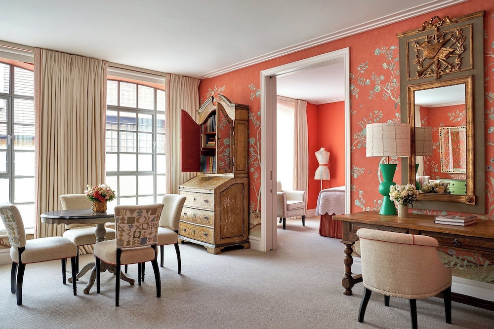 The Soho Hotel, Firmdale Hotels ligger centralt i London, en tio minuters promenad från både Leicester Square och Piccadilly Circus. Detta hotell med familjevänlig profil ligger 1 km från British Museum och 1 km från Trafalgar Square. Känn dig som hemma i ett av de 96 individuellt inredda rummen med minibarer och platt-tv. Med gratis fast internetanslutning och wi-fi håller du dig uppkopplad, medan kabelkanaler står för underhållningen. Badrummen har dush över badkar, djupa badkar och lyxtoalettartiklar. På rummet finns värdeförvaringsskåp och skrivbord. Städning erbjuds dagligen. Avstånd avrundas till närmsta decimal.