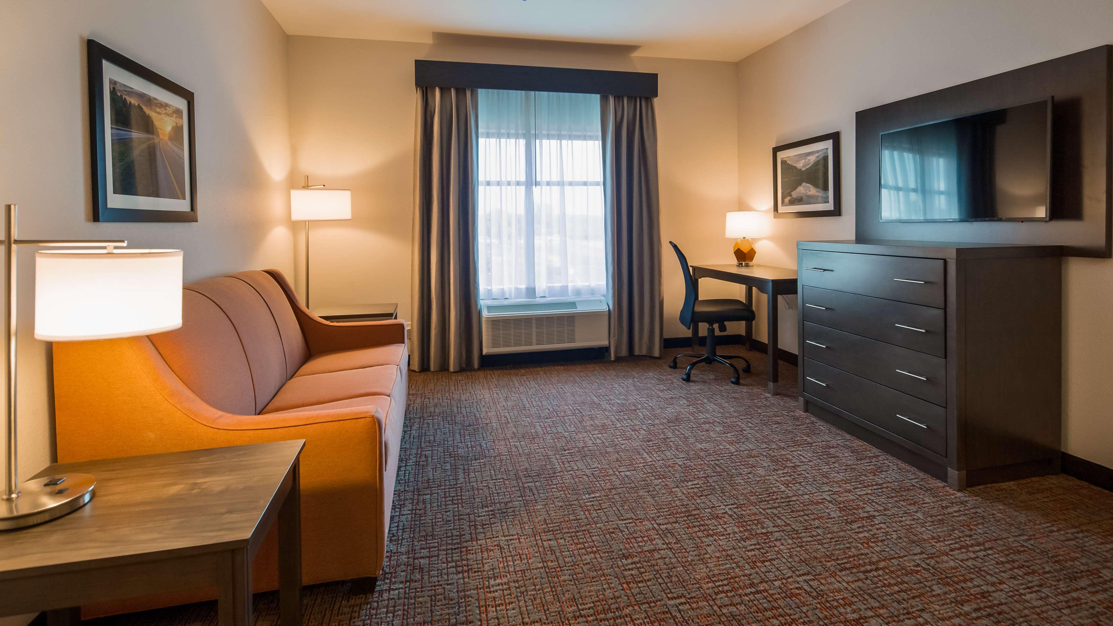 Välkommen till Best Western Plus Elizabethtown Inn & Suites, beläget utanför I-65 vid Exit 94 i hjärtat av Elizabethtown, Kentucky. Vi är glada att välkomna alla gäster, oavsett om det är för affärer eller nöjen. Våra 92 rymliga rum har kostnadsfritt höghastighetsinternet, en komplett varm frukost och bekväma sängar. Vårt vackra hotell har också ett businesscenter som är öppet dygnet runt, ett fitnesscenter, en uppvärmd inomhuspool med saltvatten och en lounge utomhus med eldstad. Den historiska staden Elizabethtown är känd för sin rika lokala historia och är nu också hem för nya lokalt ägda restauranger, kaféer och shoppingbutiker. Under åren har Elizabethtown fortsatt att växa i fritidsaktiviteter som inkluderar en biograf och otaliga köpcentrum och restauranger som inkluderar Texas Roadhouse®, Cracker Barrel®, Impellizzeris Pizza och många fler. Vi är övertygade om att resenärer också kommer att uppskatta vårt hotells närhet till välkända attraktioner som Fort Knox Army Base, Elizabethtown Sports Park, Jim Beam® Distillery, The Kentucky Derby Museum, Churchill Downs och Louisville Slugger® Museum & Factory, allt inom bara 10 till 45 miles bilresa. Vårt hotell ligger också nära många företag, inklusive Metalsa Corporation, Flex Films USA, Hardin Memorial Hospital, Akebono och AGC Automotive.