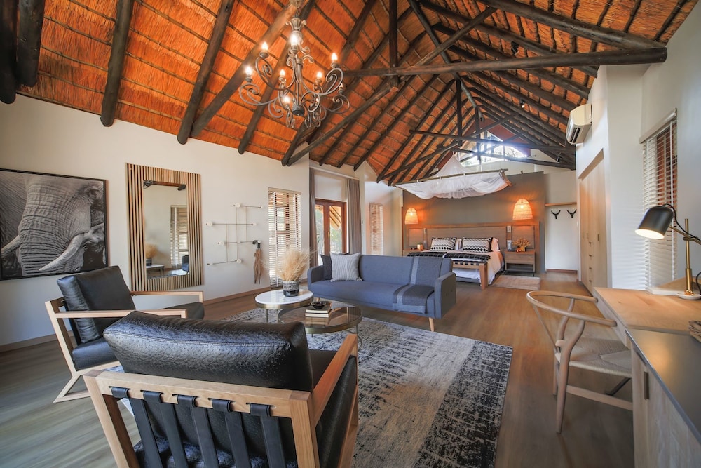Nkala Safari Lodge ligger i Pilanesberg nationalpark, en fem minuters bilfärd från Pilanesberg National Park. Detta fritidshus i lyxstil ligger 31,8 km från Moses Kotane Hospital och 35,4 km från Waterworld. Känn dig som hemma i ett av de luftkonditionerade rummen med kök. Gratis wi-fi gör att du kan hålla dig uppkopplad, och en platt-tv med satellitkanaler erbjuder all underhållning du behöver. På rummet finns värdeförvaringsskåp och skrivbord. Städning erbjuds dagligen. Avstånd avrundas till närmsta decimal.