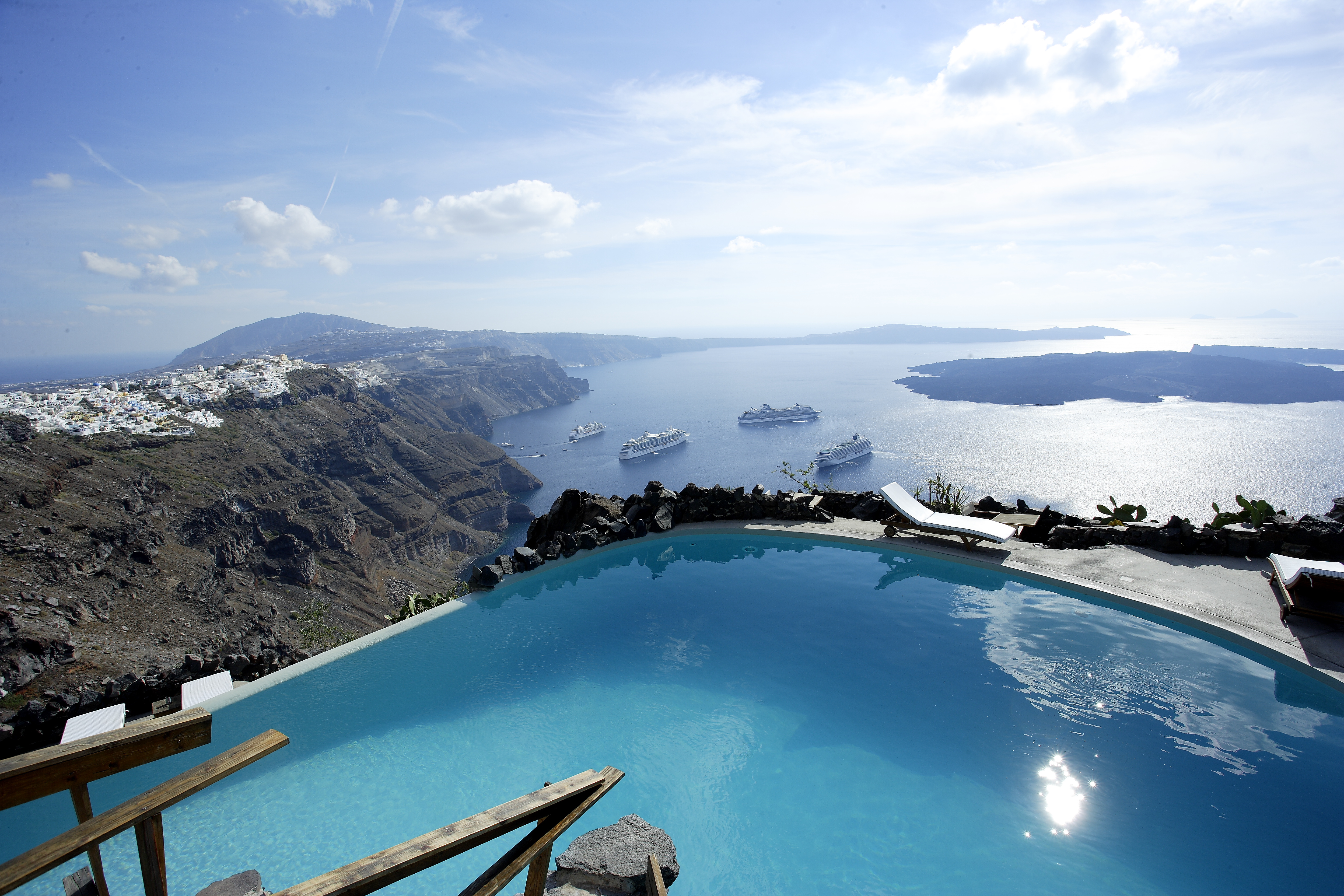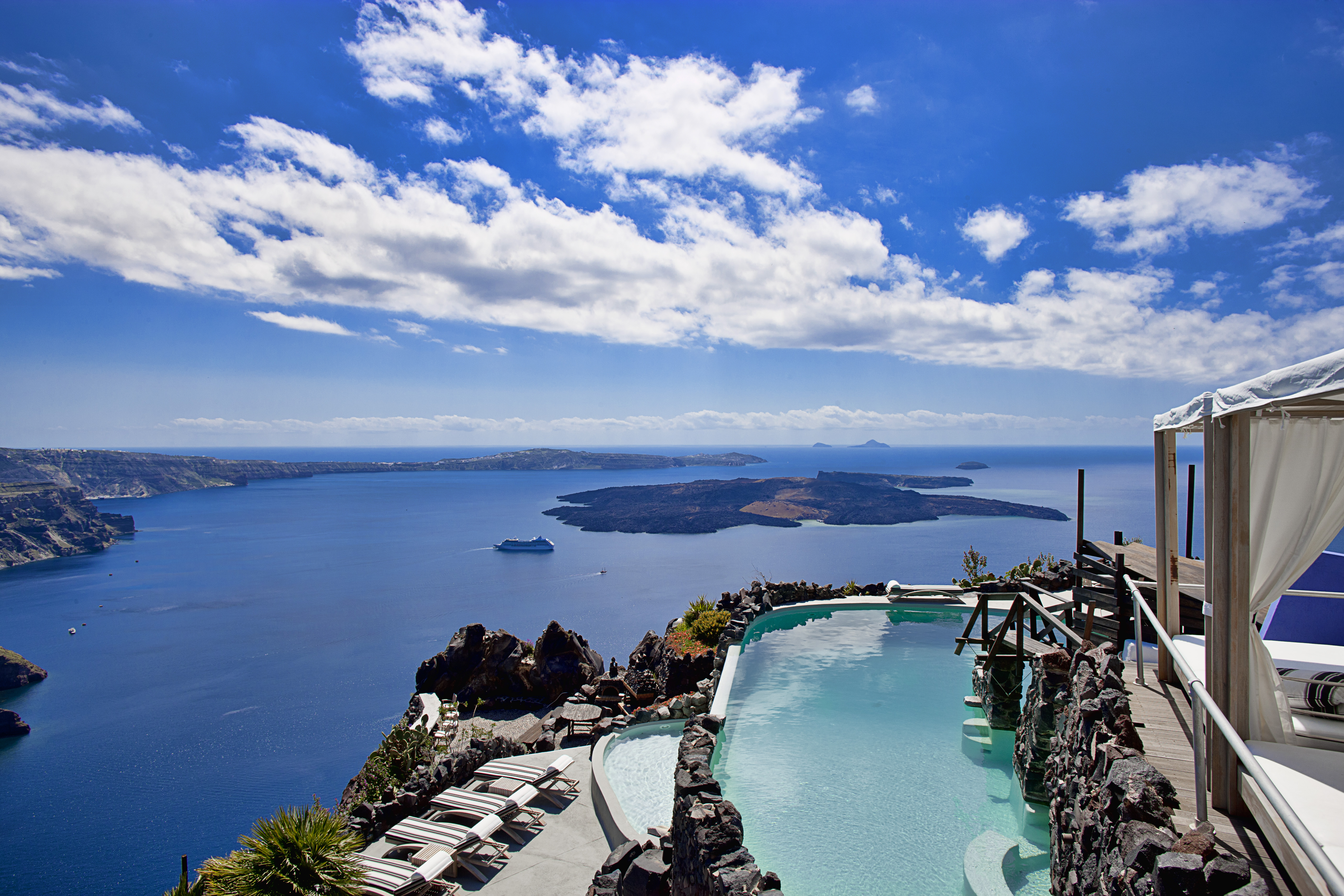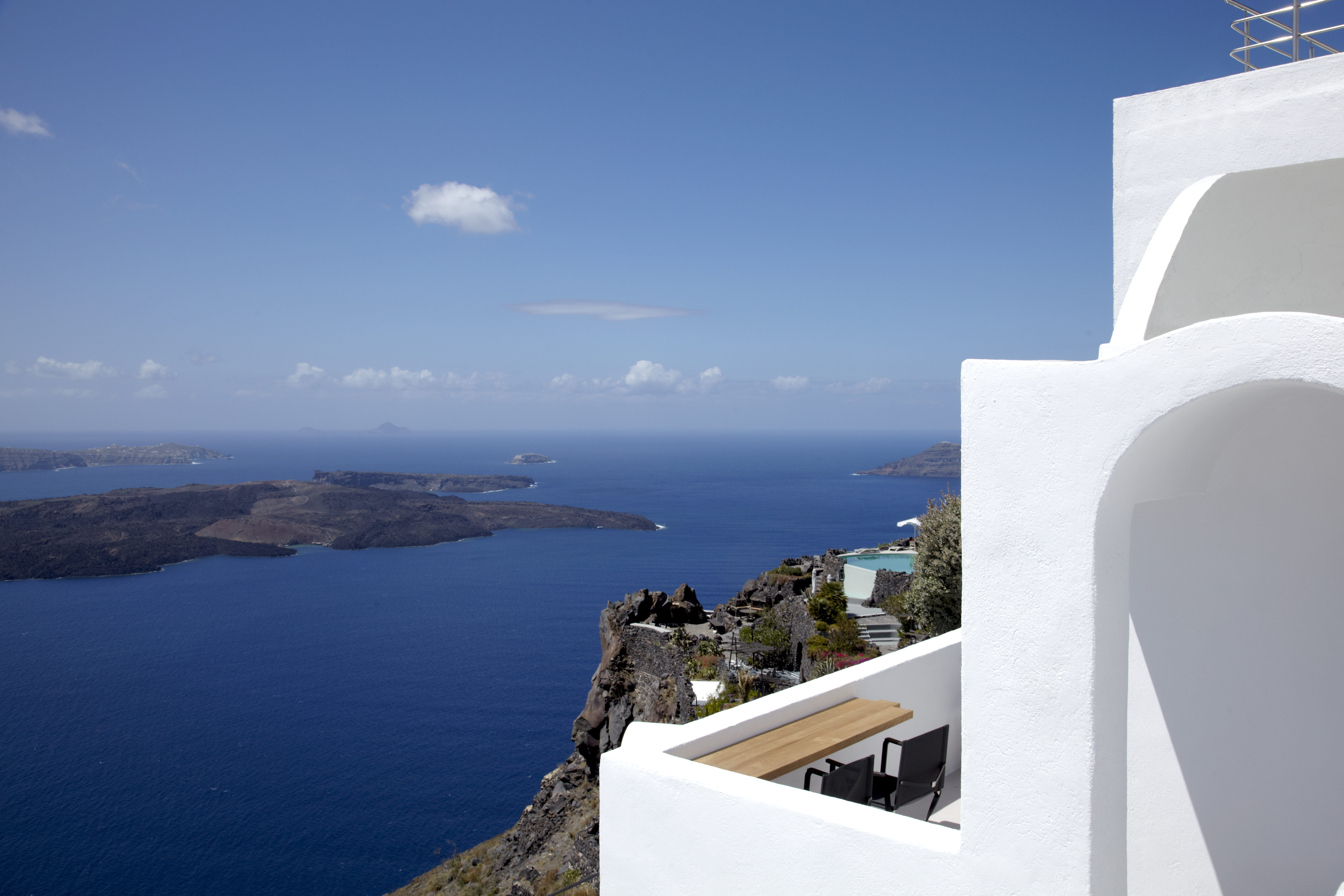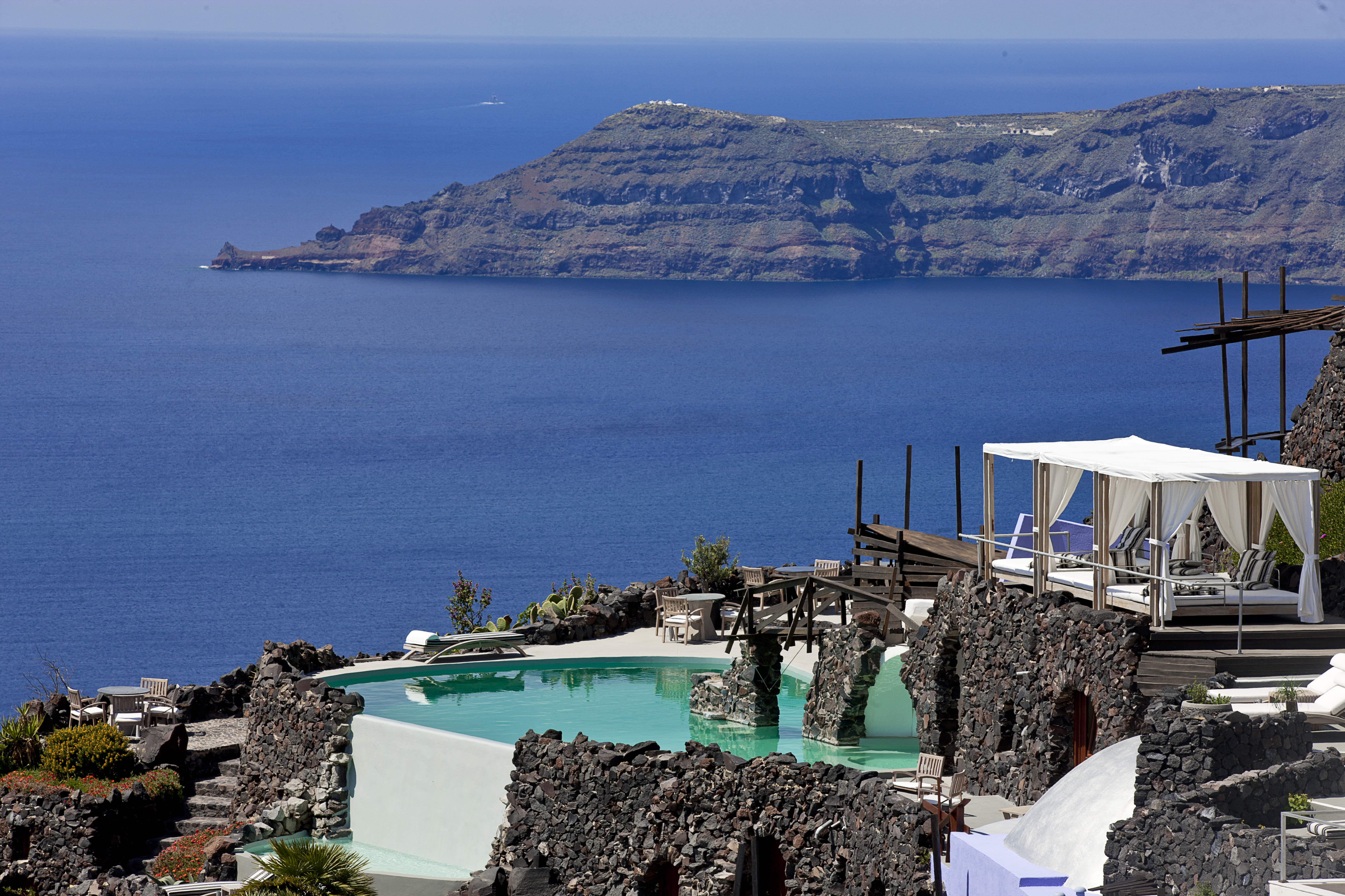 Detta charmiga femstjärniga hotell ligger i Imerovigli, högt uppe på kalderaklipporna, omgivet av hisnande naturlandskap.