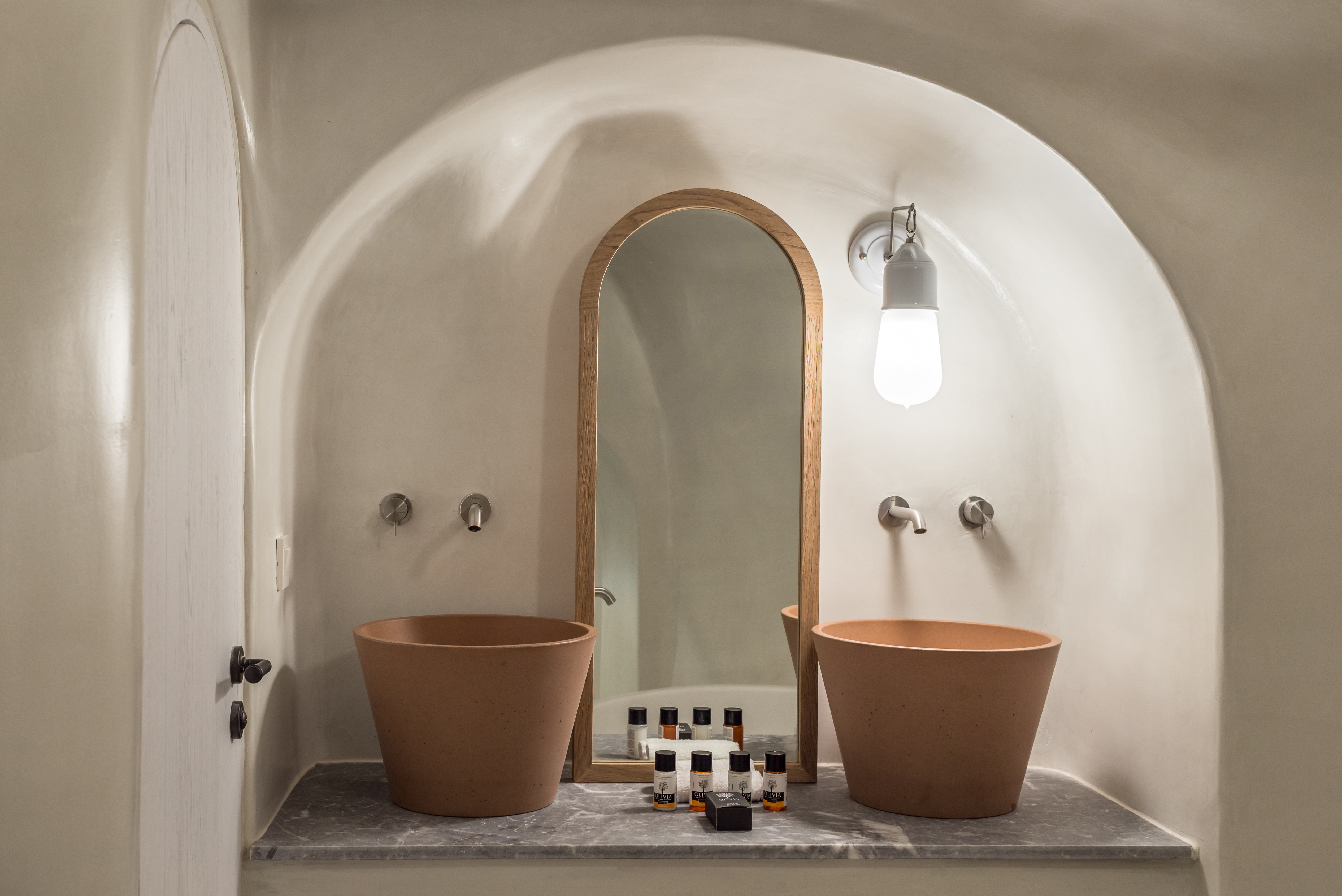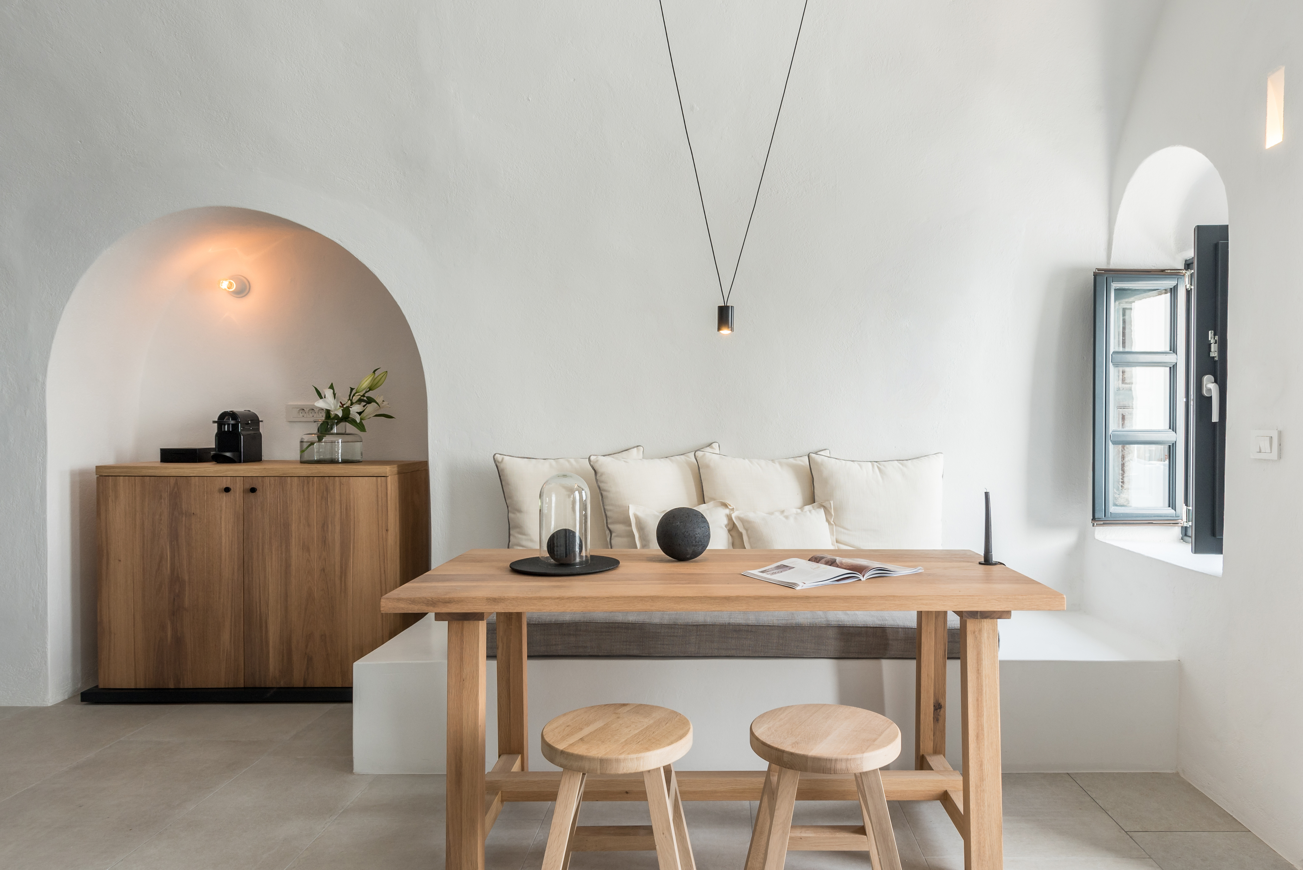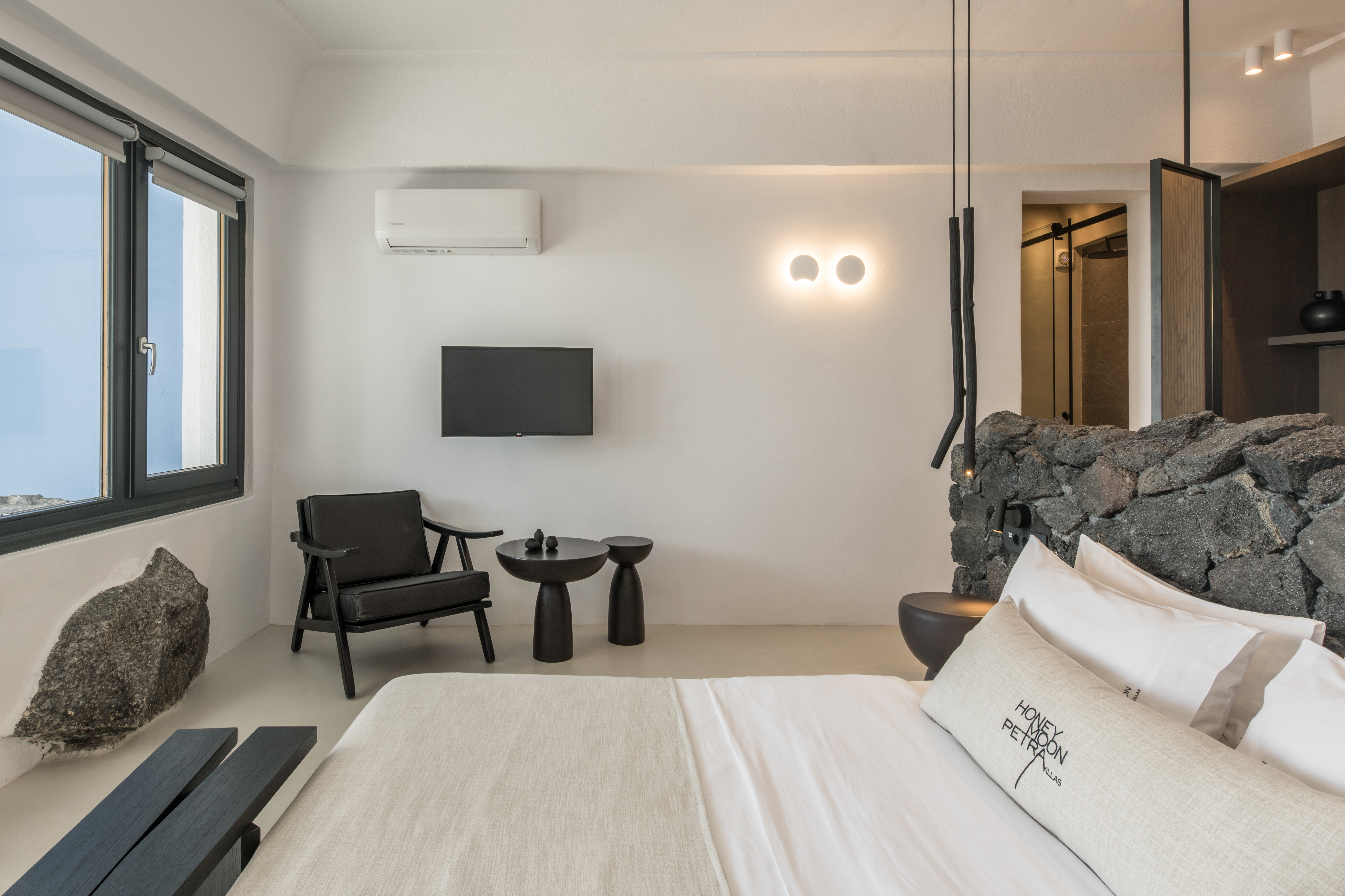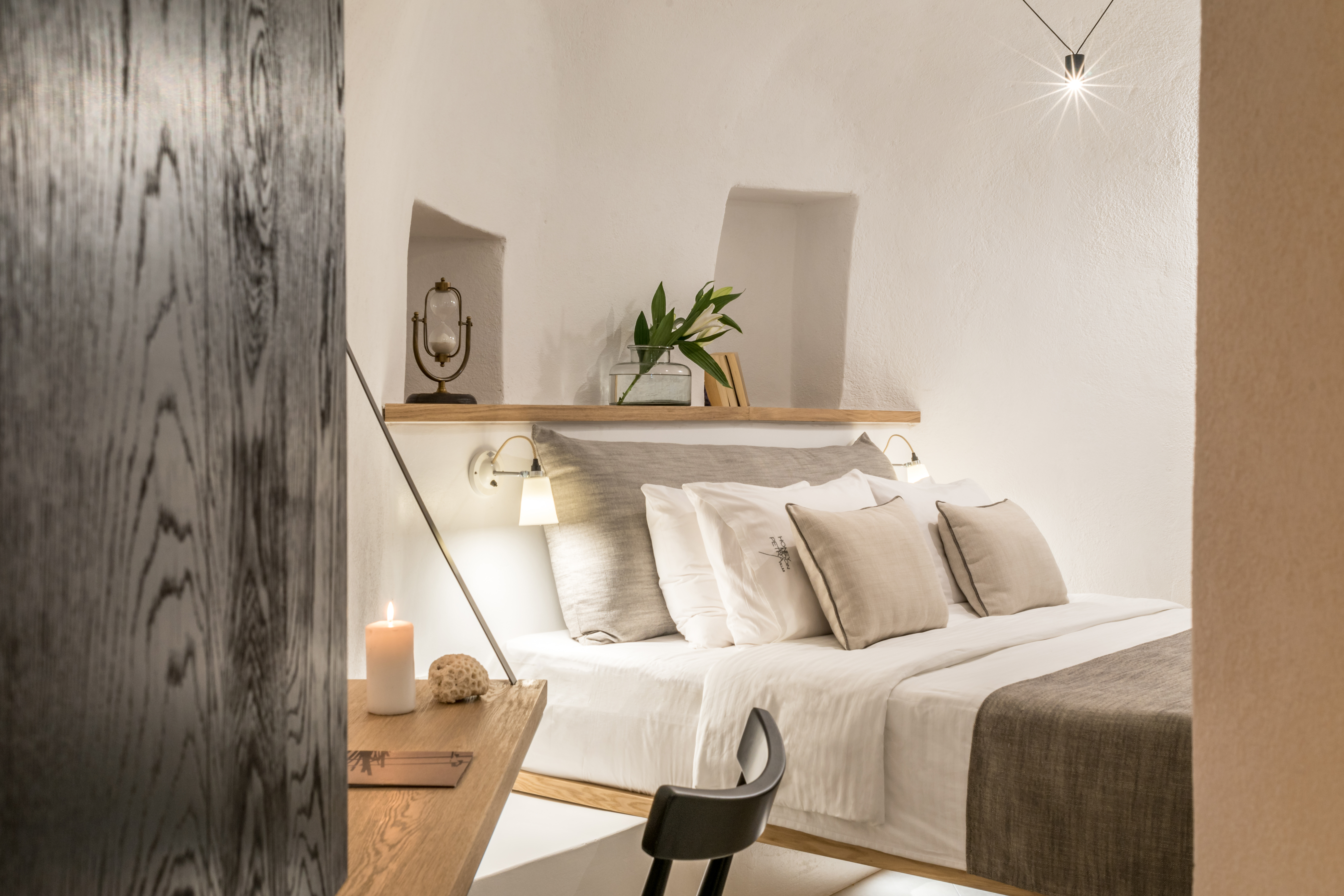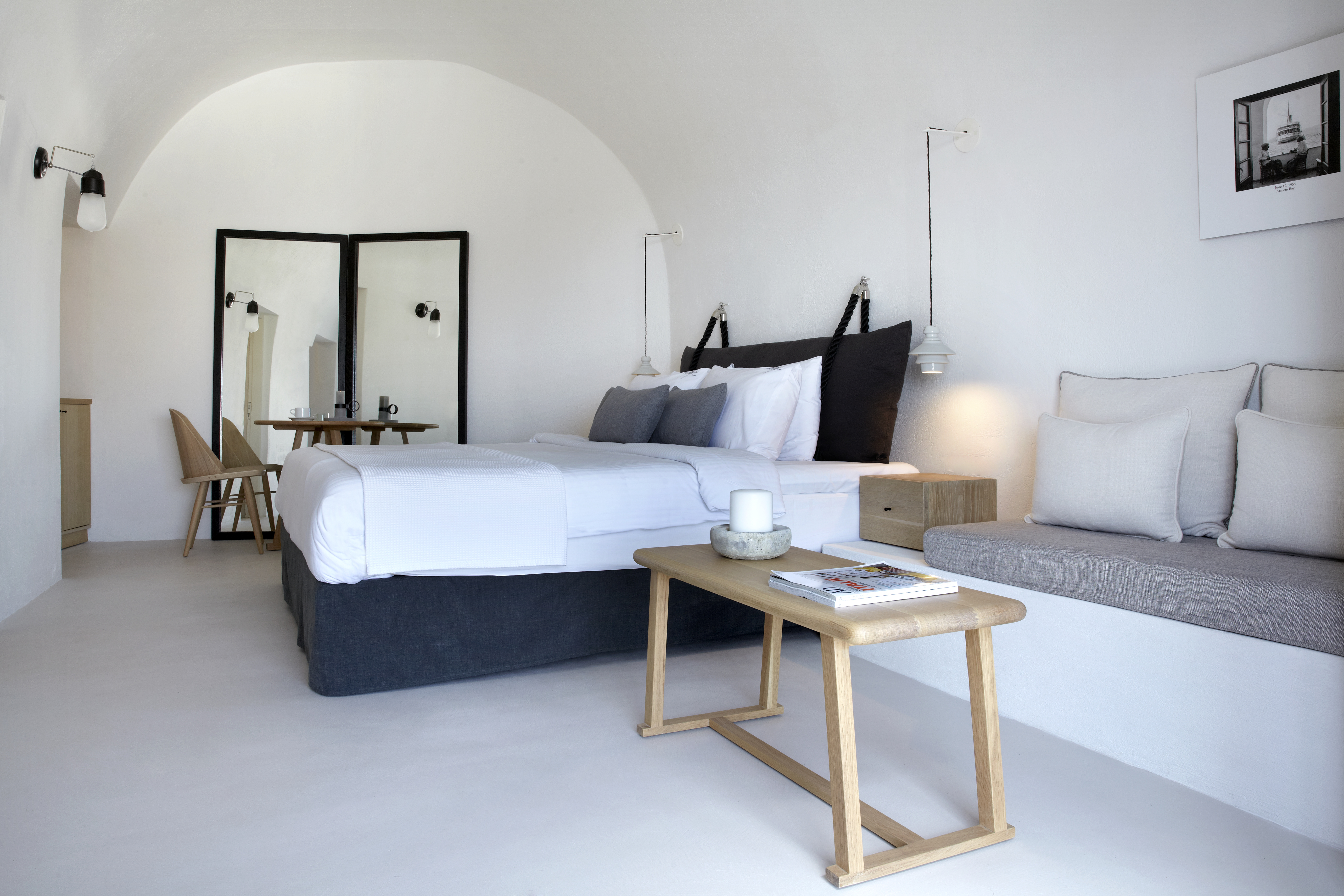 Detta charmiga femstjärniga hotell ligger i Imerovigli, högt uppe på kalderaklipporna, omgivet av hisnande naturlandskap. En kort fem minuters promenad leder till Imeroviglis centrum, med dess restauranger, butiker, apotek och busstation. Firas livliga nattliv ligger bara 1, 9 km bort, och flygplatsen ligger cirka 12 km från hotellet. Den antika fästningen Skaros ligger bara 1 km bort. Hotellet består av två flyglar och erbjuder totalt 25 lägenheter. Den traditionella flygeln, högre upp på klippan, har sju studior och sviter inbyggda i berget, vilket minimerar tillgången till trappor. Petra-flygeln, närmare de viktigaste faciliteterna, erbjuder 18 studior och sviter byggda av vulkanisk sten. Renoverat 2018 erbjuder detta luftkonditionerade hotell en 24-timmars lobby och poolbar, en à la carte-restaurang, Wi-Fi, parkering, concierge, rumsservice och tvättservice. Alla rum har en fenomenal utsikt över kalderans södra sida och vulkanen. Medan varje rum/svit har en privat uteplats med solstolar, behåller den öppna designen en obehindrad utsikt. Bekvämligheter inkluderar luftkonditionering, smart/satellit-TV, minibar, direkttelefon, handdukar, hårtork, en Nespresso-maskin, schampo och balsam, Wi-Fi och ett laptopsäkert värdeskåp. Som gäst kan du njuta av utomhuspoolen, poolbaren, soldäcket och solstolarna, allt perfekt placerat för spektakulära solnedgångar. En plunge pool och ångbastu finns också tillgängliga. En frukostbuffé serveras dagligen från 8:00 till 10:30. Observera: Besökare är inte tillåtna på fastigheten och barn under 14 år är inte tillåtna.