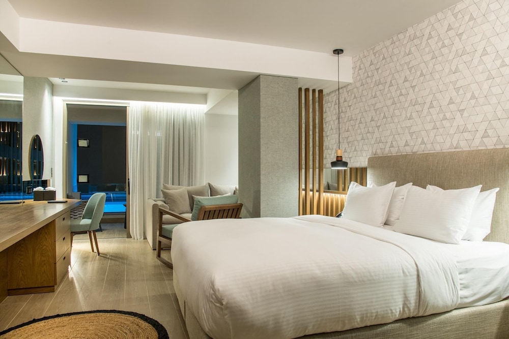Akasha Beach Hotel & Spa ligger i Chersonissos, en 1 minuters bilfärd från Star Beach Water Park och 9 minuter från Stalis strand. Detta hotell i lyxstil ligger 1,1 km från Aquaworld Aquarium och 1,2 km från Sarakino. Känn dig som hemma i ett av de 120 rummen med minibarer och platt-tv. Rummen har privata inredda balkonger. Gratis wi-fi gör att du kan hålla dig uppkopplad, och satellit-tv erbjuder underhållning. Privat badrum med dusch, regndusch och gratis toalettartiklar. Avstånd avrundas till närmsta decimal.