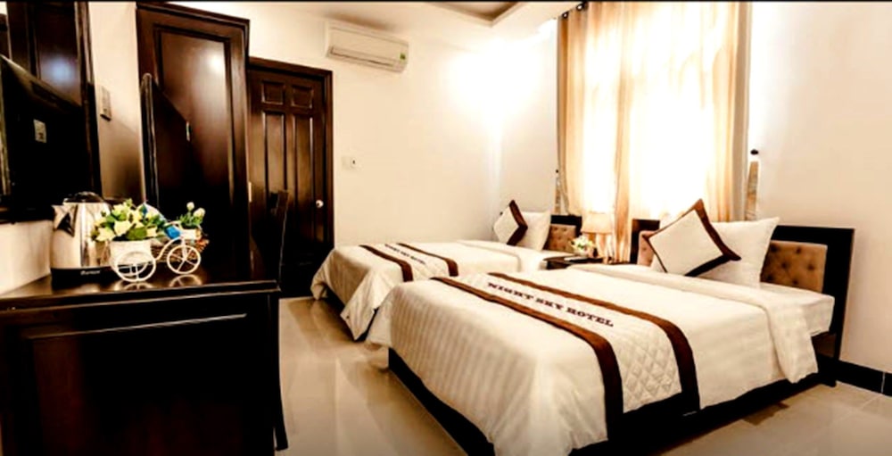 Night Sky Hotel ligger centralt i Da Nang, en 4 minuters promenad från Han-floden och en knapp fem minuters bilfärd från Danangs katedral. Detta hotell ligger 5,4 km från My Khe-Beach och 1,7 km från Da Nang-bukten. Känn dig som hemma i ett av de 28 luftkonditionerade rummen med eldstäder och LCD-tv. Gratis wi-fi gör att du kan hålla dig uppkopplad. På rummet finns telefon, värdeförvaringsskåp och skrivbord. Avstånd avrundas till närmsta decimal.