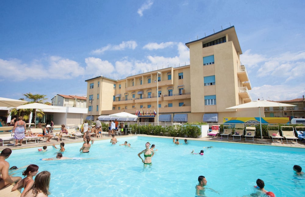 Hotel in Marina di Cecina a few steps from the sea ligger i Cecina vid vattnet, en kort 1 minuters promenad från Tomboli di Cecina naturreservat och 7 minuter från Marina di Cecina-stranden.  Detta hotell vid stranden ligger 1 km från Acqua Village och 3,1 km från Il Parco Archeologico Comunale della Villa Romana di S.Vincenzino. Känn dig som hemma i ett av de 70 rummen med minibarer. Satellit-tv erbjuder underhållning. Privat badrum med dusch, gratis toalettartiklar och bidéer. På rummet finns telefon, värdeförvaringsskåp och skrivbord. Avstånd avrundas till närmsta decimal.