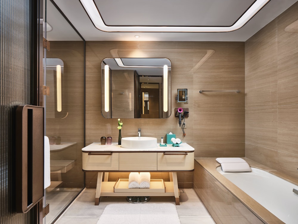 Mitt i Chongqing ligger InterContinental Chongqing Raffles City by IHG, en knapp fem minuters bilfärd från De tre klyftornas museum och Chongqings stora teater. Detta hotell i lyxstil ligger 4,7 km från Chaotianmen-torget och 8,9 km från Chongqings olympiska sportcenter. Känn dig som hemma i ett av de 380 individuellt inredda rummen med minibarer och espressobryggare. Gratis wi-fi ser till att du kan hålla dig uppkopplad, och en 50-tums LCD-tv med kabelkanaler erbjuder all underhållning du behöver. Badrum med badkar eller dusch, regndusch och lyxtoalettartiklar. På rummet finns telefon, värdeförvaringsskåp och skrivbord. Avstånd avrundas till närmsta decimal.