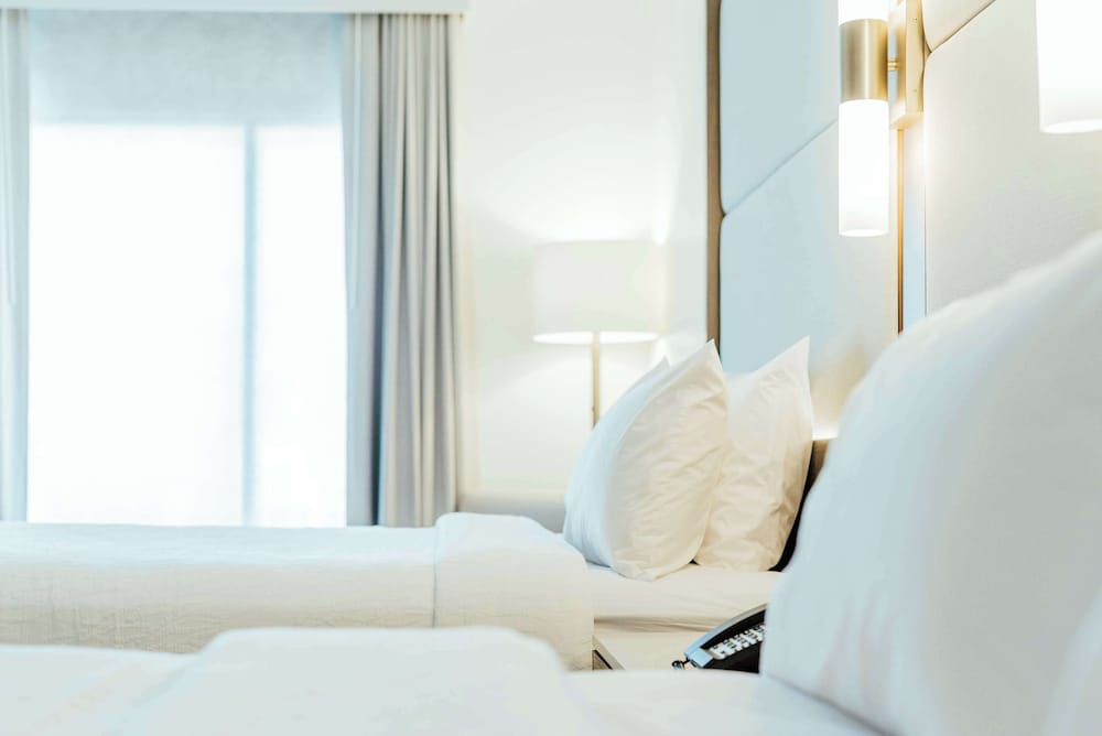 - Anslutande rum kan erbjudas i mån av tillgång. Gäster kan be om anslutande rum genom att kontakta boendet direkt med kontaktuppgifterna i bokningsbekräftelsen.