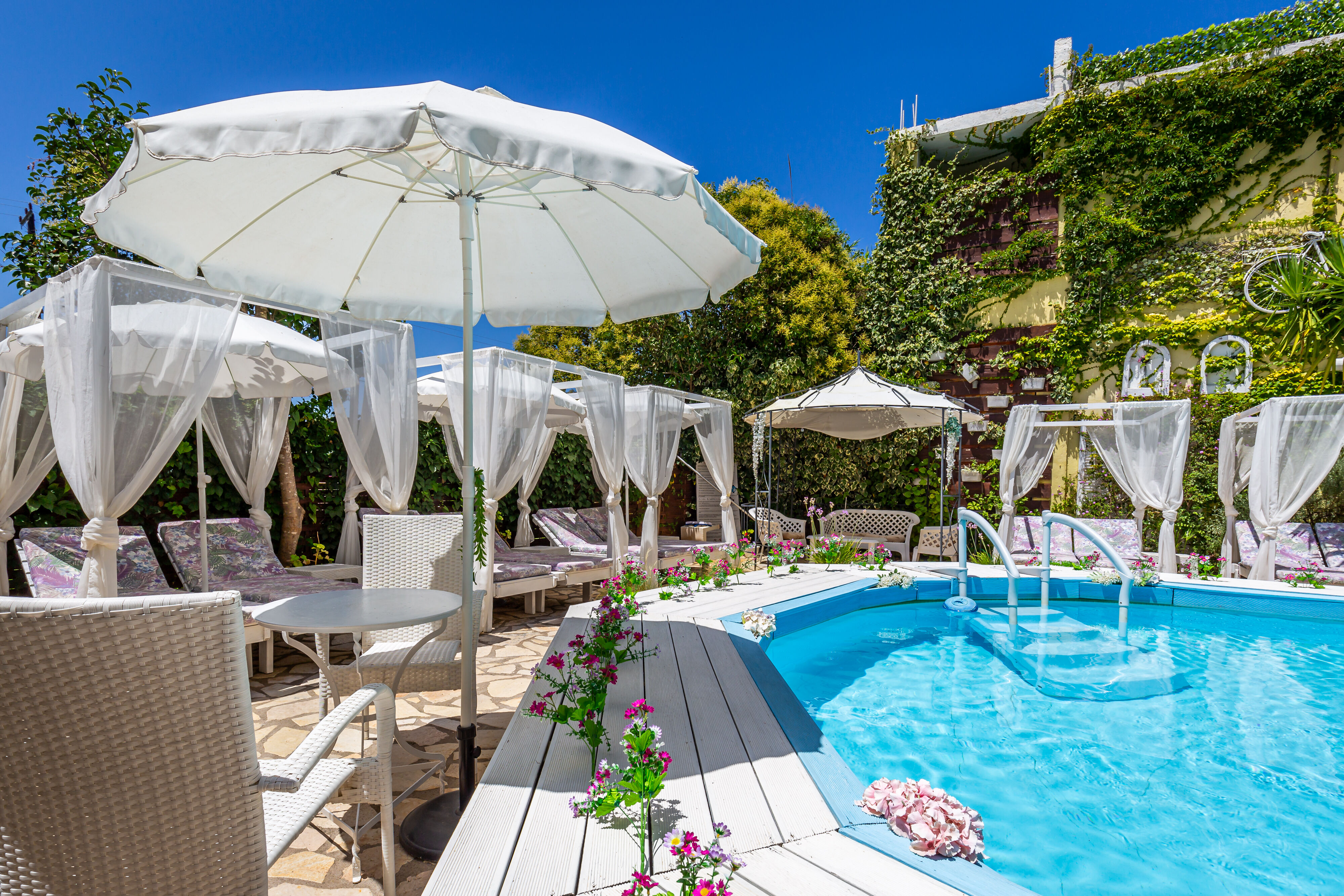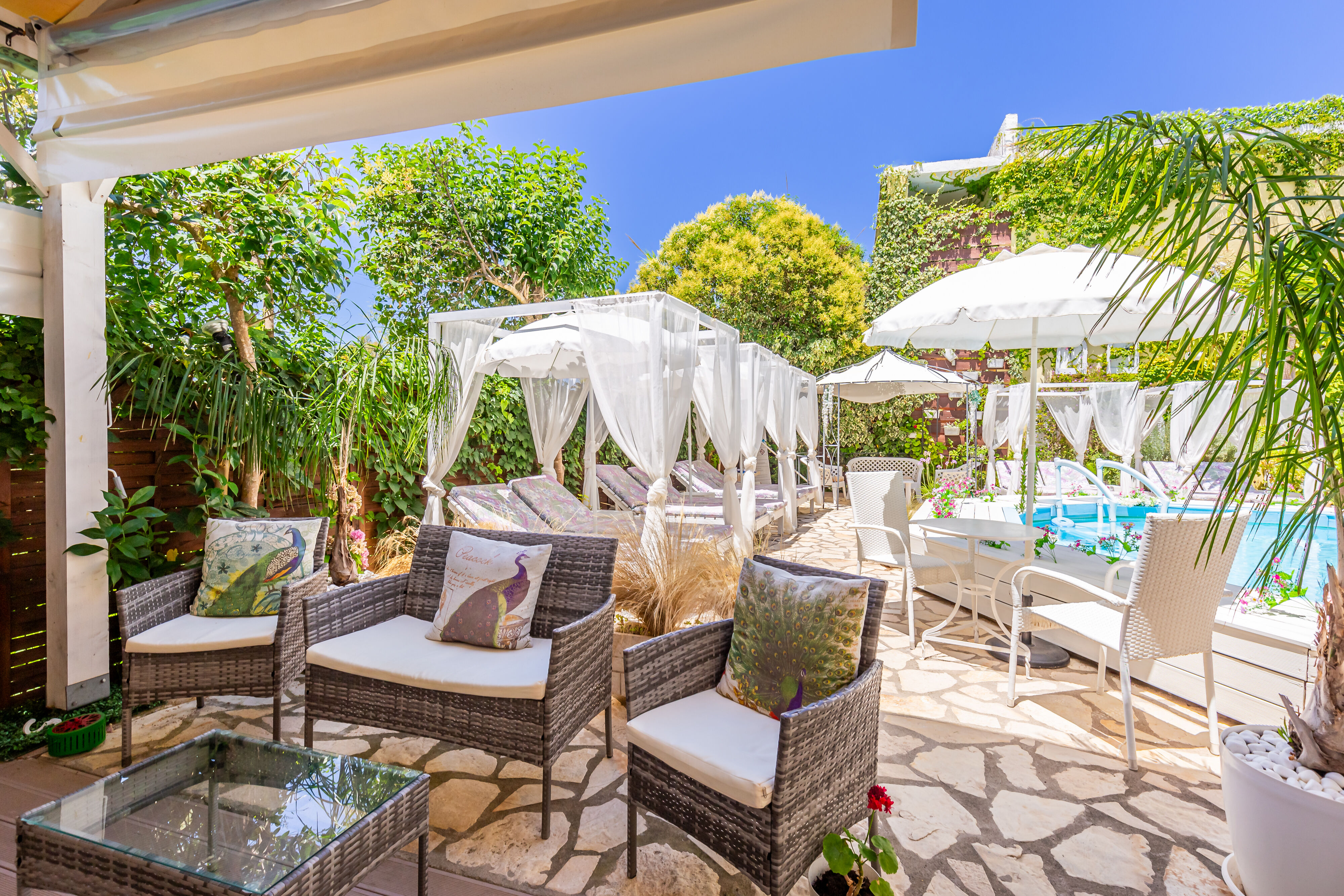 V. A Boutique Apartments & Suites erbjuder stilfulla lägenheter och sviter bara en kort promenad från Acharavi centrum och dess vackra strand. Beläget bara 50 meter från en av Korfus mest fantastiska stränder, har detta konsthotell en utomhuspool, poolbar, anlagda trädgårdar och unikt temainredda rum, vilket skapar en avkopplande och sofistikerad flykt för par, smekmånadsresenärer och familjer. Var och en av de sex temainredda lägenheterna erbjuder moderna bekvämligheter, inklusive gratis Wi-Fi, gratis luftkonditionering, en balkong eller uteplats och ett fullt utrustat kök med matplats. Hotellet är smakfullt inrett med vackra väggmålningar och handgjorda möbler och visar en passion för konst med spännande udda föremål och dekorationer i hela hotellet. Gästerna kan koppla av i de lugna trädgårdarna och upptäcka avskilda bås, solbäddar och sittplatser som är idealiska för att njuta av en uppfriskande drink. V. A Boutique Apartments & Suites kombinerar professionell service med en varm, vänlig atmosfär för en oförglömlig sommarsemester.