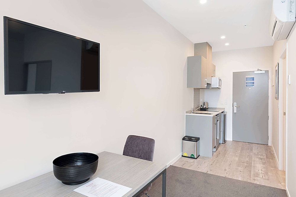 Ramada Suites By Wyndham Victoria Street West ligger centralt i Auckland, en 4 minuters promenad från SkyCity Casino och 5 minuter från Sky Tower. Detta lägenhetshotell ligger 0,6 km från Queen Street Shopping District och 0,7 km från Princes Wharf. Känn dig som hemma i ett av de 50 luftkonditionerade rummen med kylskåp och mikrovågsugn. Gratis wi-fi ser till att du kan hålla dig uppkopplad, och en 32-tums platt-tv med satellitkanaler erbjuder all underhållning du behöver. Badrum med dusch, gratis toalettartiklar och hårtorkar. På rummet finns telefon, kaffe- och tebryggare och strykjärn/strykbräda. Avstånd avrundas till närmsta decimal.