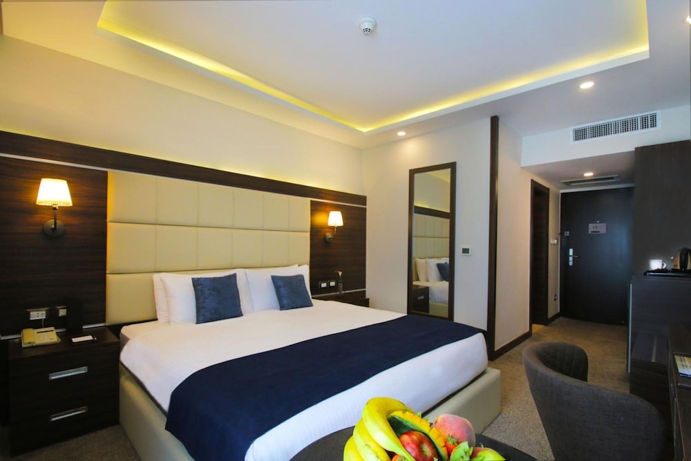 MENA Tyche Hotel Amman ligger i Amman (i området Al-Abdali), en fem minuters bilfärd från både Al Abdali-shoppingcentret och Premiärministeriet. Detta hotell ligger 1,3 km från Shmaisani Hospital och 1,6 km från Abdoun-bron. Känn dig som hemma i ett av de 210 luftkonditionerade rummen med kylskåp och platt-tv. Gratis wi-fi gör att du kan hålla dig uppkopplad, och kabel-tv erbjuder underhållning. Badrummen har badkar/dusch och gratis toalettartiklar. På rummet finns värdeförvaringsskåp och skrivbord. Städning erbjuds dagligen. Avstånd avrundas till närmsta decimal.