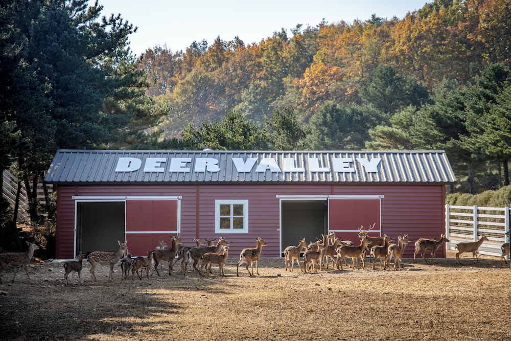 I Goseong-området Toseong ligger Kensington Resort Seorak Valley en kvarts bilfärd från både Seorak Waterpia och Seoraksan National Park. Detta lägenhetshotell ligger 10,5 km från Ayajins strand och 11,3 km från Yeongnangho Lake. Skäm bort dig och bo i ett av 114 individuellt inredda rum med golvvärme och platt-tv. Kök utrustat med kylskåp och spishäll. Gratis wi-fi gör att du kan hålla dig uppkopplad, och satellit-tv erbjuder underhållning. På rummet finns separata sittutrymmen och vattenkokare. Städning erbjuds en gång per vistelse. Avstånd avrundas till närmsta decimal.