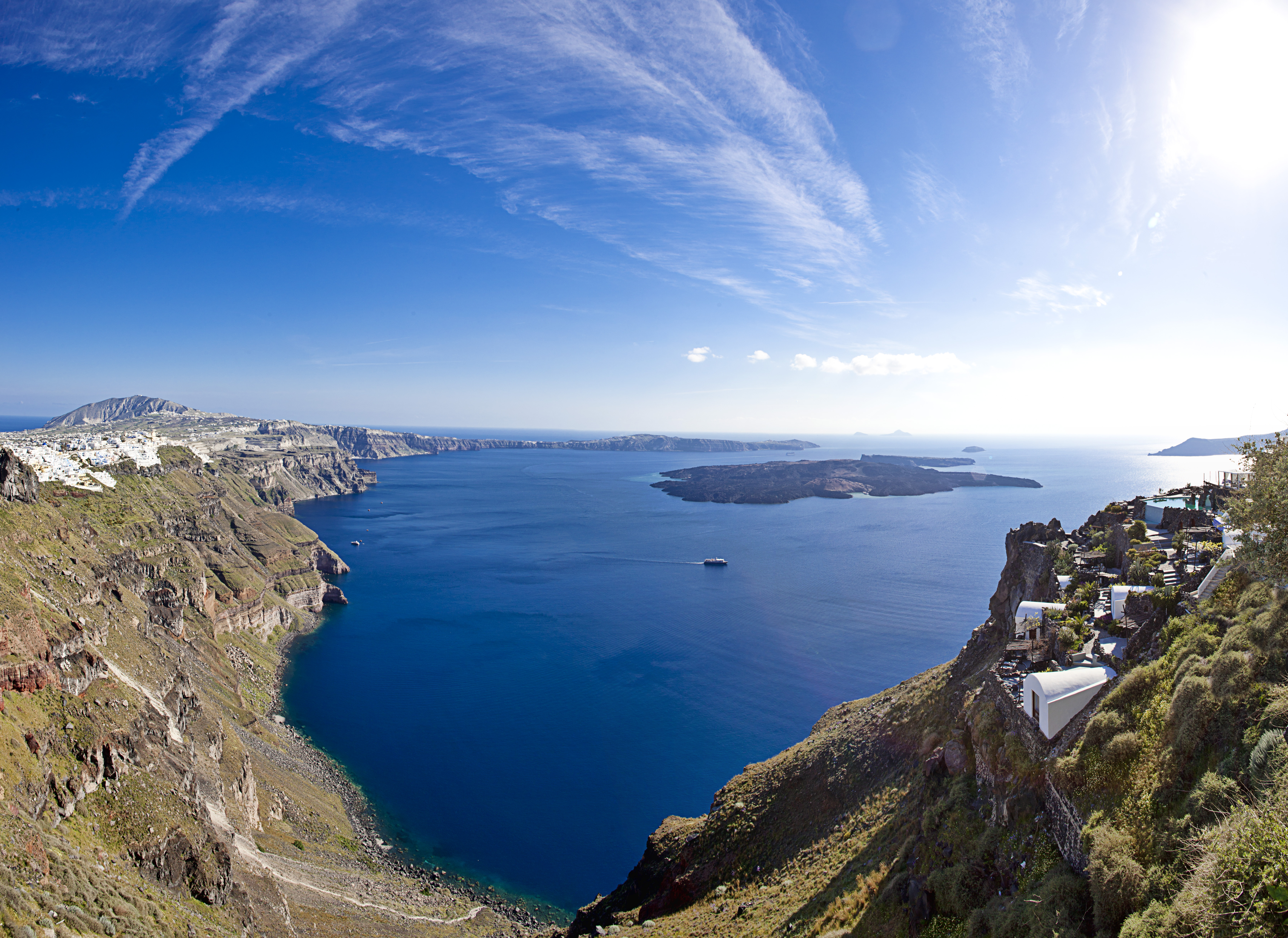 Detta charmiga femstjärniga hotell ligger i Imerovigli, högt uppe på kalderaklipporna, omgivet av hisnande naturlandskap.