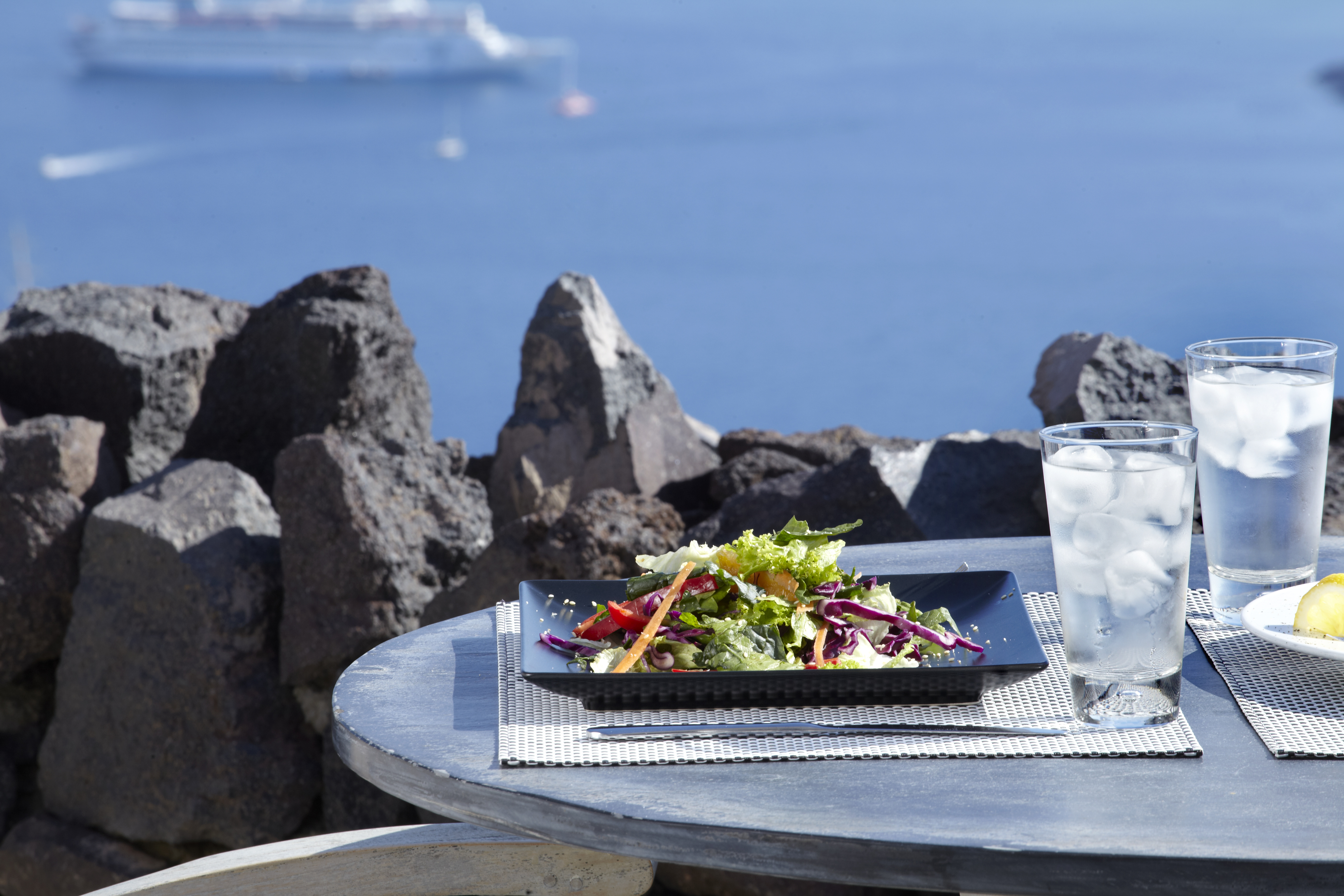 Detta charmiga femstjärniga hotell ligger i Imerovigli, högt uppe på kalderaklipporna, omgivet av hisnande naturlandskap. En kort fem minuters promenad leder till Imeroviglis centrum, med dess restauranger, butiker, apotek och busstation. Firas livliga nattliv ligger bara 1, 9 km bort, och flygplatsen ligger cirka 12 km från hotellet. Den antika fästningen Skaros ligger bara 1 km bort. Hotellet består av två flyglar och erbjuder totalt 25 lägenheter. Den traditionella flygeln, högre upp på klippan, har sju studior och sviter inbyggda i berget, vilket minimerar tillgången till trappor. Petra-flygeln, närmare de viktigaste faciliteterna, erbjuder 18 studior och sviter byggda av vulkanisk sten. Renoverat 2018 erbjuder detta luftkonditionerade hotell en 24-timmars lobby och poolbar, en à la carte-restaurang, Wi-Fi, parkering, concierge, rumsservice och tvättservice. Alla rum har en fenomenal utsikt över kalderans södra sida och vulkanen. Medan varje rum/svit har en privat uteplats med solstolar, behåller den öppna designen en obehindrad utsikt. Bekvämligheter inkluderar luftkonditionering, smart/satellit-TV, minibar, direkttelefon, handdukar, hårtork, en Nespresso-maskin, schampo och balsam, Wi-Fi och ett laptopsäkert värdeskåp. Som gäst kan du njuta av utomhuspoolen, poolbaren, soldäcket och solstolarna, allt perfekt placerat för spektakulära solnedgångar. En plunge pool och ångbastu finns också tillgängliga. En frukostbuffé serveras dagligen från 8:00 till 10:30. Observera: Besökare är inte tillåtna på fastigheten och barn under 14 år är inte tillåtna.