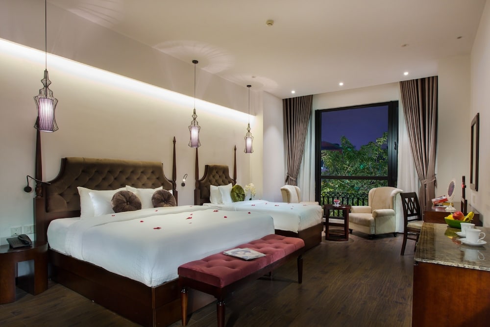 Hanoi Marvellous Hotel & Spa ligger centralt i Hanoi, en tio minuters promenad från både Hoan Kiem-sjön och Sankt Josefs katedral i Hanoi. Detta hotell ligger 0,7 km från Hanois historiska stadskärnas nattmarknad och 1,6 km från Hanois operahus. Känn dig som hemma i ett av de 50 luftkonditionerade rummen med minibarer och plasma-tv. Gratis wi-fi gör att du kan hålla dig uppkopplad, och kabel-tv erbjuder underhållning. Badrum med dusch, regndusch och gratis toalettartiklar. På rummet finns värdeförvaringsskåp och skrivbord. Städning erbjuds dagligen. Avstånd avrundas till närmsta decimal.