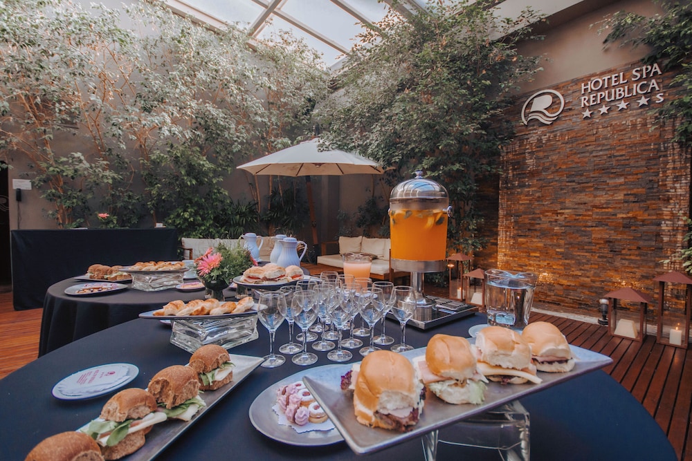 Hotel Spa Republica ligger i hjärtat av Mar del Plata, en fem minuters promenad från både Palacio Arabe och Plaza Mitre. Detta hotell ligger 0,6 km från Colon-teatern och 0,6 km från Los Gallegos Shopping. Känn dig som hemma i ett av de 80 luftkonditionerade rummen med privata pooler och LCD-tv. Sängen i ditt rum har memory foam-madrass. Gratis wi-fi gör att du kan hålla dig uppkopplad och på rummet har du även kabel-tv och dvd-spelare. På rummet finns telefon, värdeförvaringsskåp och skrivbord. Avstånd avrundas till närmsta decimal.
