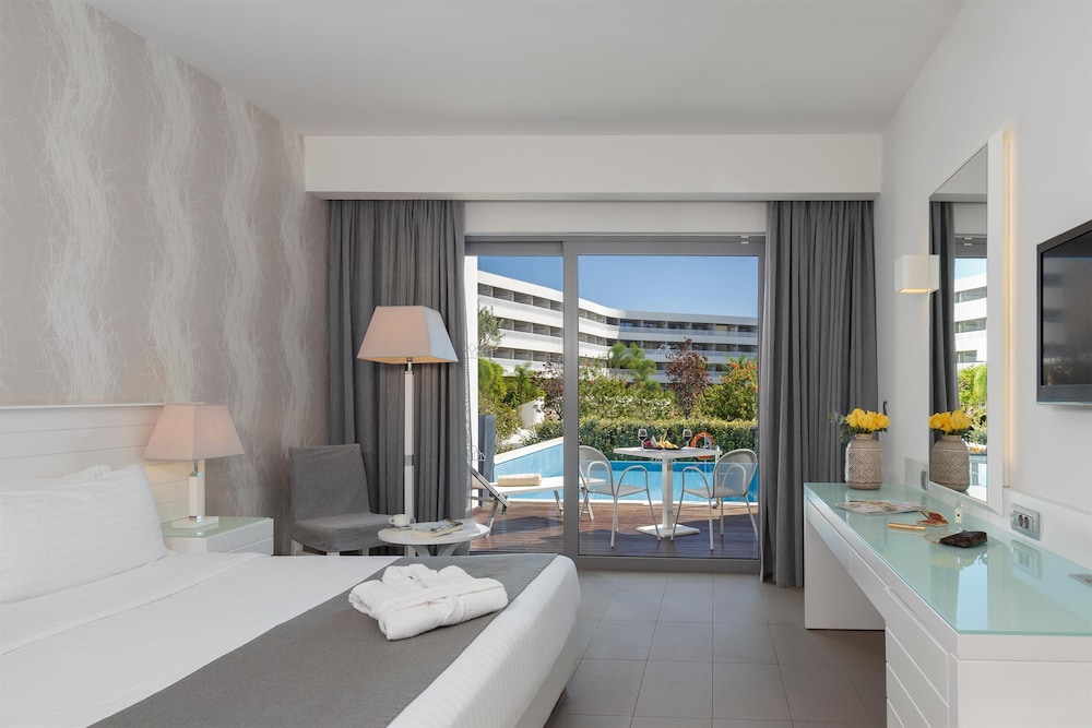 Princess Andriana Resort & Spa – Ultra All Inclusive ligger i Rhodos i ett shoppingområde, en kort 3 minuters promenad från Galoúni strand och 13 minuter från Kiotari strand.  Detta boende med all-inclusive ligger 11,5 km från Pefkos strand och 15,4 km från Lindos Beach. Känn dig som hemma i ett av de 537 individuellt inredda rummen med gratis produkter i minibar och smart-tv. Med gratis fast internetanslutning och wi-fi håller du dig uppkopplad, medan satellitkanaler står för underhållningen. Privat badrum med badkar/dusch, gratis toalettartiklar och hårtorkar. Gäster erbjuds telefon och laptopanpassade värdeförvaringsskåp, såväl som städning dagligen. Avstånd avrundas till närmsta decimal.