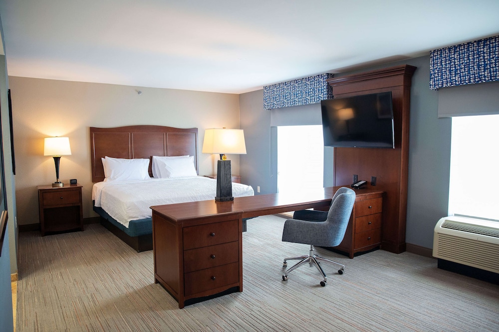 Hampton Inn & Suites Jacksonville ligger i Jacksonville nära flygplatsen, en fem minuters bilfärd från och Coastal Carolina Community College och Onslow Memorial Hospital. Detta hotell ligger 7,2 km från Lejeune Memorial Gardens och 10,1 km från Camp Lejeune Main Gate and Visitor Center. Känn dig som hemma i ett av de 110 luftkonditionerade rummen med kylskåp och LCD-tv. Med gratis fast internetanslutning och wi-fi håller du dig uppkopplad, medan satellitkanaler står för underhållningen. Privat badrum med lyxtoalettartiklar och hårtorkar. På rummet finns skrivbord, kaffe- och tebryggare och telefon med gratis lokalsamtal. Avstånd avrundas till närmsta decimal.