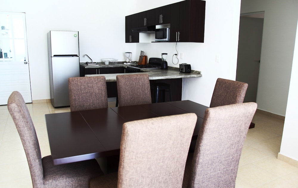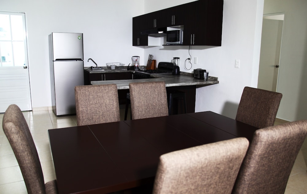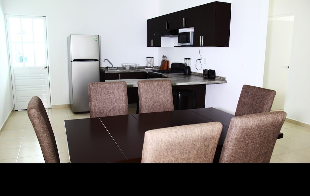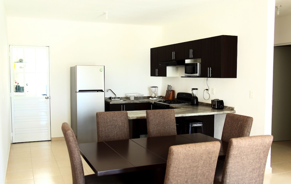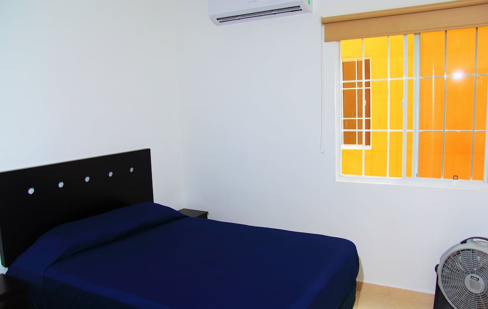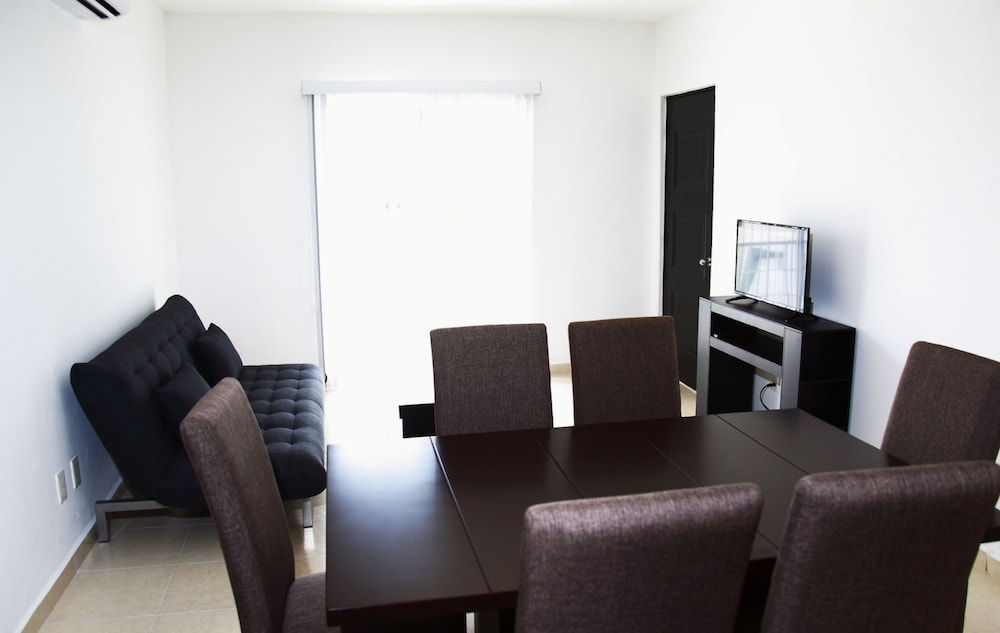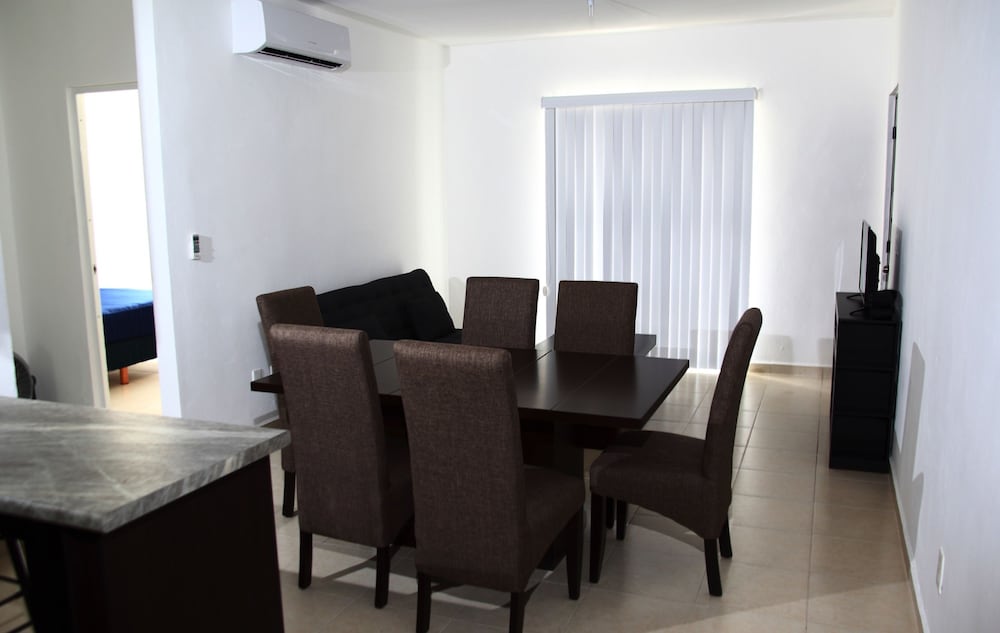 Denna lägenhet ligger i Playa del Carmen, en tio minuters bilfärd från både Playa del Carmen stora strand och Quinta Avenida. Denna lägenhet ligger 11,8 km från Xcaret Eco nöjespark och 18 km från Maroma strand. Slå dig till ro i den här luftkonditionerade lägenheten, som har ett kylskåp och en ugn i köket. Det finns en privat balkong eller terrass. En platt-tv med kabelkanaler står för underhållningen, och gratis fast internet gör att du kan hålla dig uppkopplad. Bekvämligheter som ingår är ett separat loungeområde och mikrovågsugn. Avstånd avrundas till närmsta decimal.