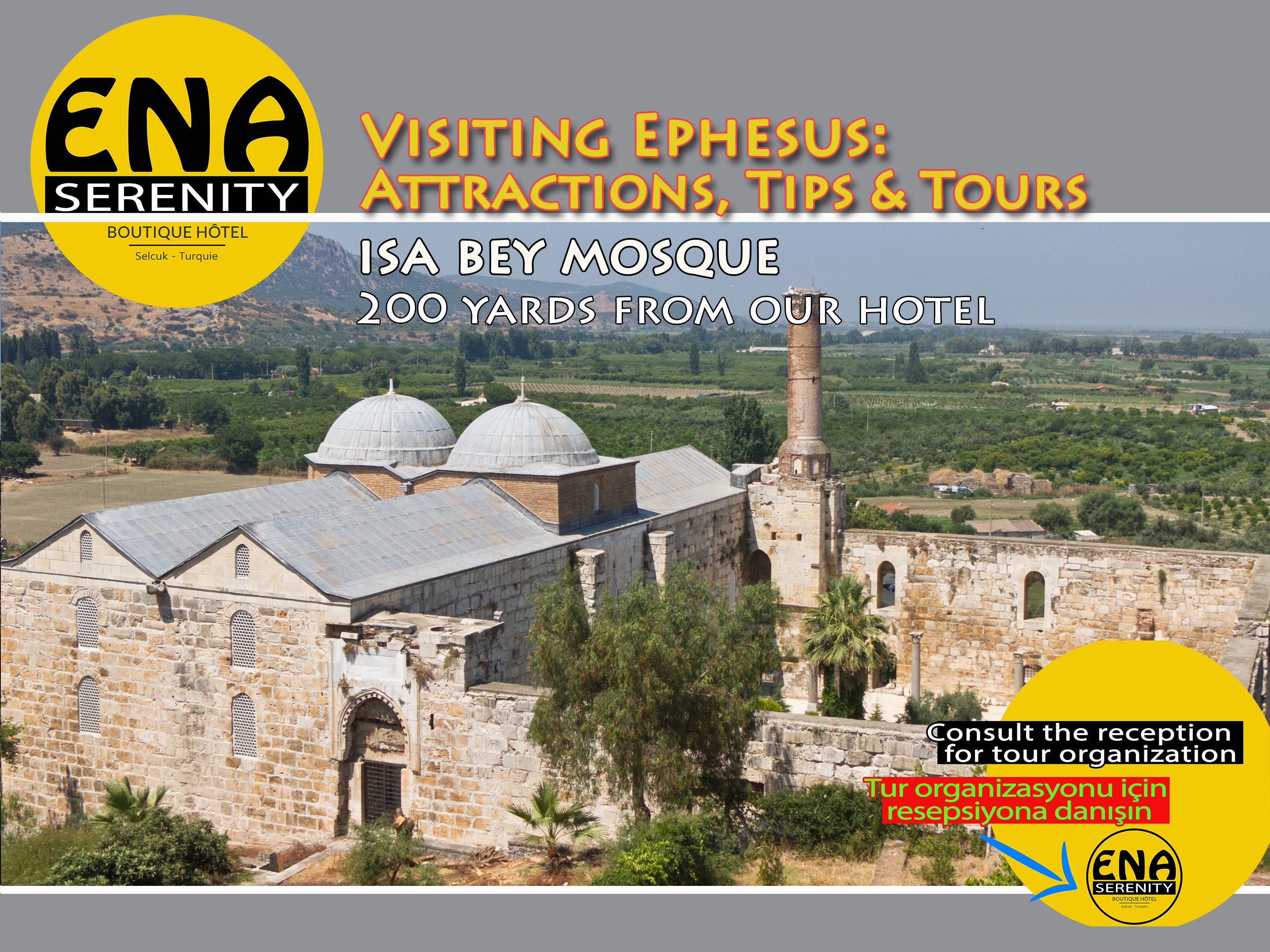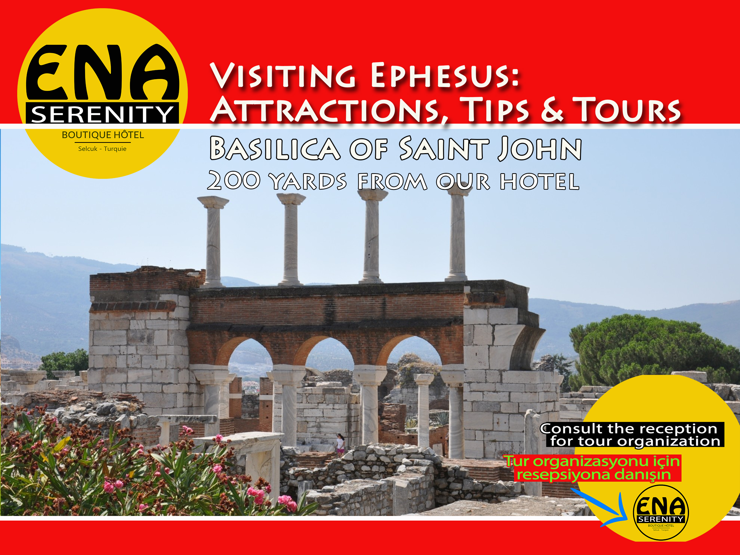 Vårt charmiga, fullständigt restaurerade Ottoman House-hotell i Selçuk, Izmir, erbjuder åtta lugna, luftkonditionerade rum, vart och ett med eget badrum, toalett och varmvatten. Frukost och Wi-Fi ingår. Vi är bekvämt belägna nära Ephesus Museum (1-2 minuter), Temple of Artemis (3 minuter), Isabey Mosque, St. John's Church och Ayasoluk Castle (7-8 minuter) samt Ephesus Ruins och Seven Sleepers (15-20 minuter). Njut av middag på begäran och koppla av med en drink på vår terrass. Den närliggande busstationen (200 m) och tågstationen (500 m) ger enkel tillgång till närliggande städer som Denizli/Pamukkale, Izmir/Kusadasi, Sirince och Tire.