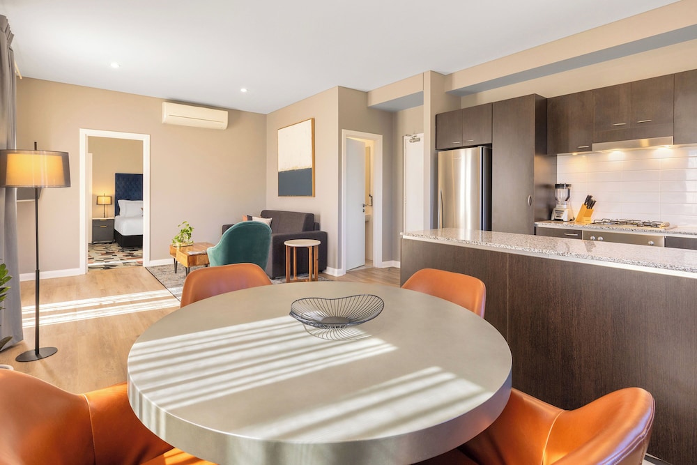 Club Wyndham Perth, Trademark Collection by Wyndham ligger i Perth (i området Västra Perth), 4 minuters promenad från Kings Park and Botanic Garden och 2 minuters bilfärd från RAC Arena. Detta hotell i lyxstil ligger 2,2 km från Hay Street Mall och 2,7 km från Elizabeth Quay. Känn dig som hemma i ett av de 10 rummen med platt-tv. Rummen har privata balkonger. Wi-fi (avgift tillkommer) gör att du kan hålla dig uppkopplad, och kabel-tv erbjuder underhållning. Privat badrum med dusch, gratis toalettartiklar och hårtorkar. Avstånd avrundas till närmsta decimal.