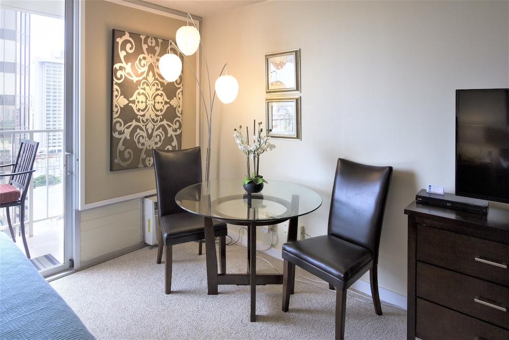 Waikiki Place - the Place to be in Waikiki ligger i Honolulu (i området Waikiki), en fem minuters promenad från både International Market Place och Royal Hawaiian Center. Detta hotell ligger 0,5 km från Waikiki Beach Walk och 0,7 km från Waikiki Beach. Känn dig som hemma i ett av de 6 individuellt inredda rummen som har kök med stor kyl/frys och ugn. Sängen har memory foam-madrass och sängtillbehör av högsta kvalitet. Rummen har privata inredda lanaier. Gratis fast internetanslutning och wi-fi. Underhållning erbjuds i form av en 48-tums platt-tv med kabelkanaler. Avstånd avrundas till närmsta decimal.