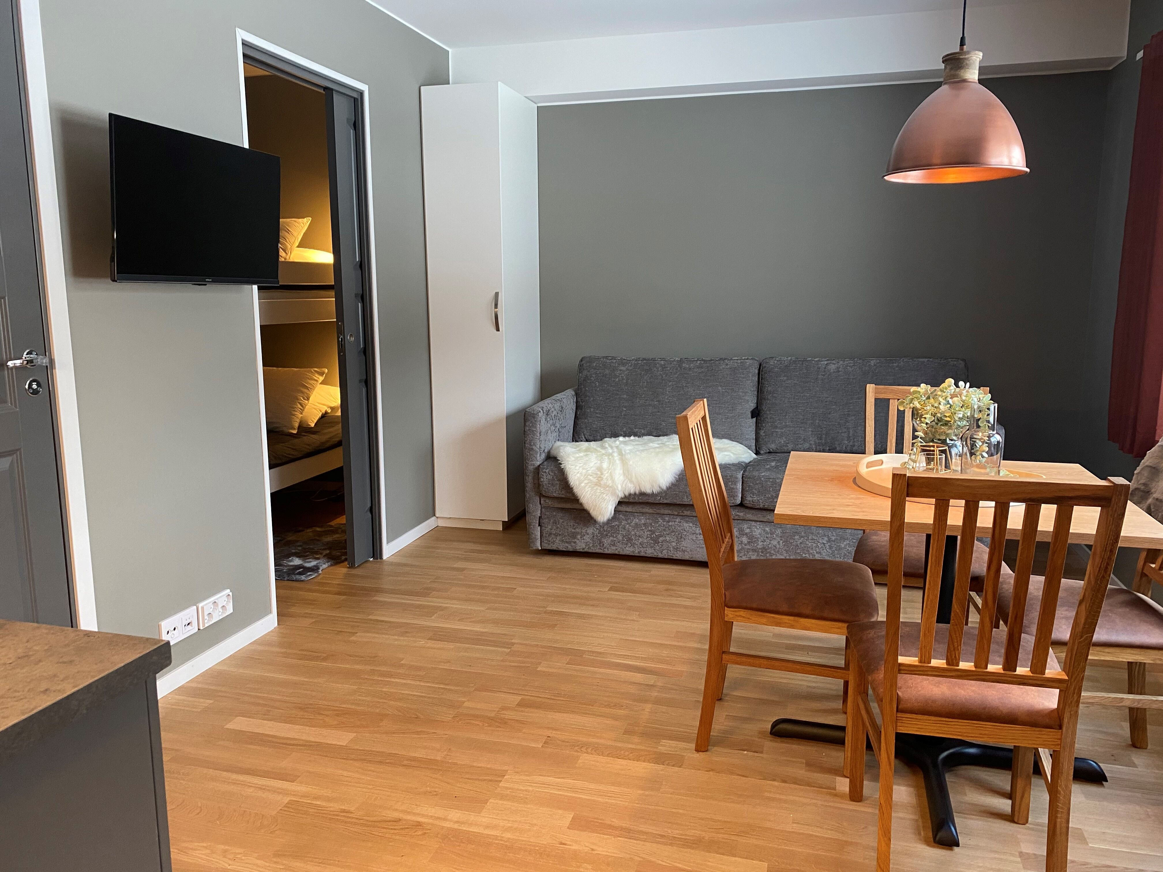 Lägenhet i övervåning 20 kvm 2+2 bäddar 1 sovrum Vintertid uthyrning med möjliga bytesdagar torsdag och söndag Sommartid uthyrning med valfri ankomstdag