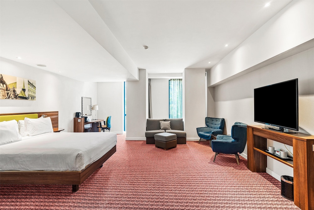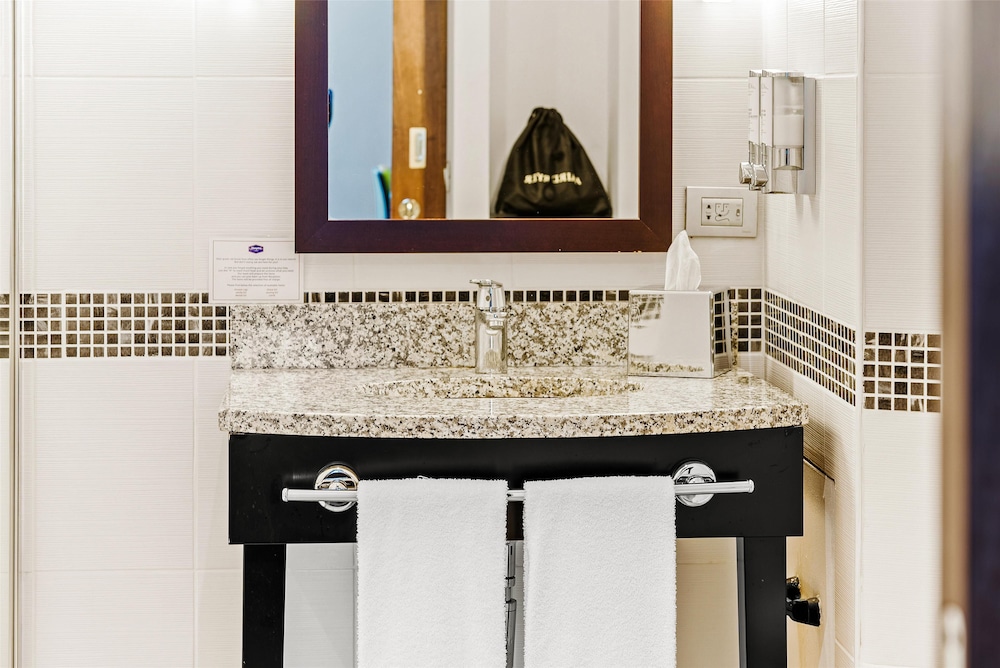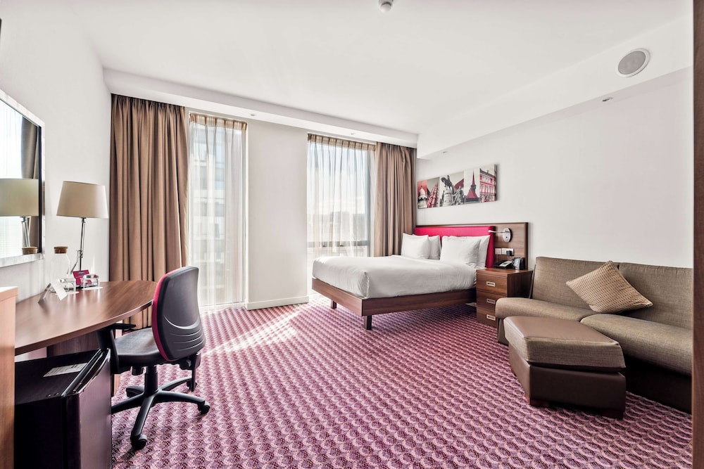 Hampton by Hilton Cluj-Napoca ligger mitt i Cluj-Napoca, en 4 minuters promenad från S:t Mikaelskyrkan och 7 minuter från Uniriitorget.  Detta hotell ligger 0,6 km från Transylvaniens nationella historiska museum och 0,9 km från Babes-Bolyai University. Känn dig som hemma i ett av de 109 luftkonditionerade rummen med LCD-tv. Med gratis fast internetanslutning och wi-fi håller du dig uppkopplad, medan kabelkanaler står för underhållningen. Privat badrum med dusch, lyxtoalettartiklar och hårtorkar. På rummet finns telefon, laptopanpassade värdeförvaringsskåp och skrivbord. Avstånd avrundas till närmsta decimal.