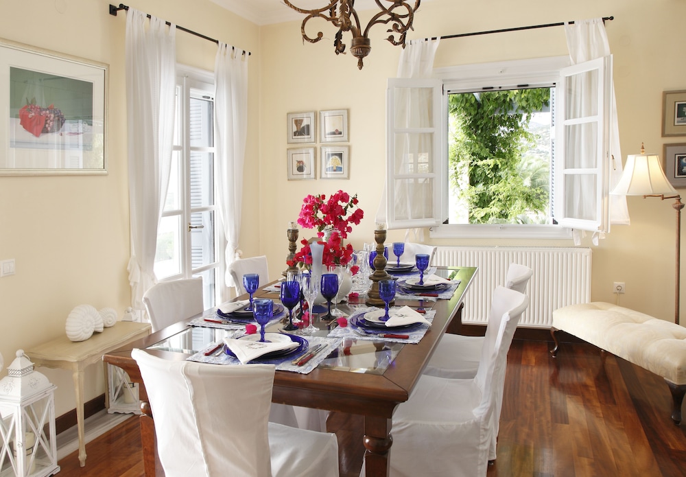 Denna villa ligger i Syros nära flygplatsen, en fem minuters bilfärd från och Geniko Nosokomio Sirou "Vardakio kai Proio" och Neorion Elefsis skeppsvarv. Denna villa med familjevänlig profil ligger 4,6 km från Finikas strand och 5 km från Syros stadshus. Slå dig till ro i den här luftkonditionerade villan, som har privat pool och platt-tv. Din säng har en bäddmadrass och egyptiska bomullslakan. Det finns en privat balkong eller terrass. Köket är utrustat med en stor kyl med frys, en ugn och en spishäll. Gratis wi-fi gör att du kan hålla dig uppkopplad. Avstånd avrundas till närmsta decimal.