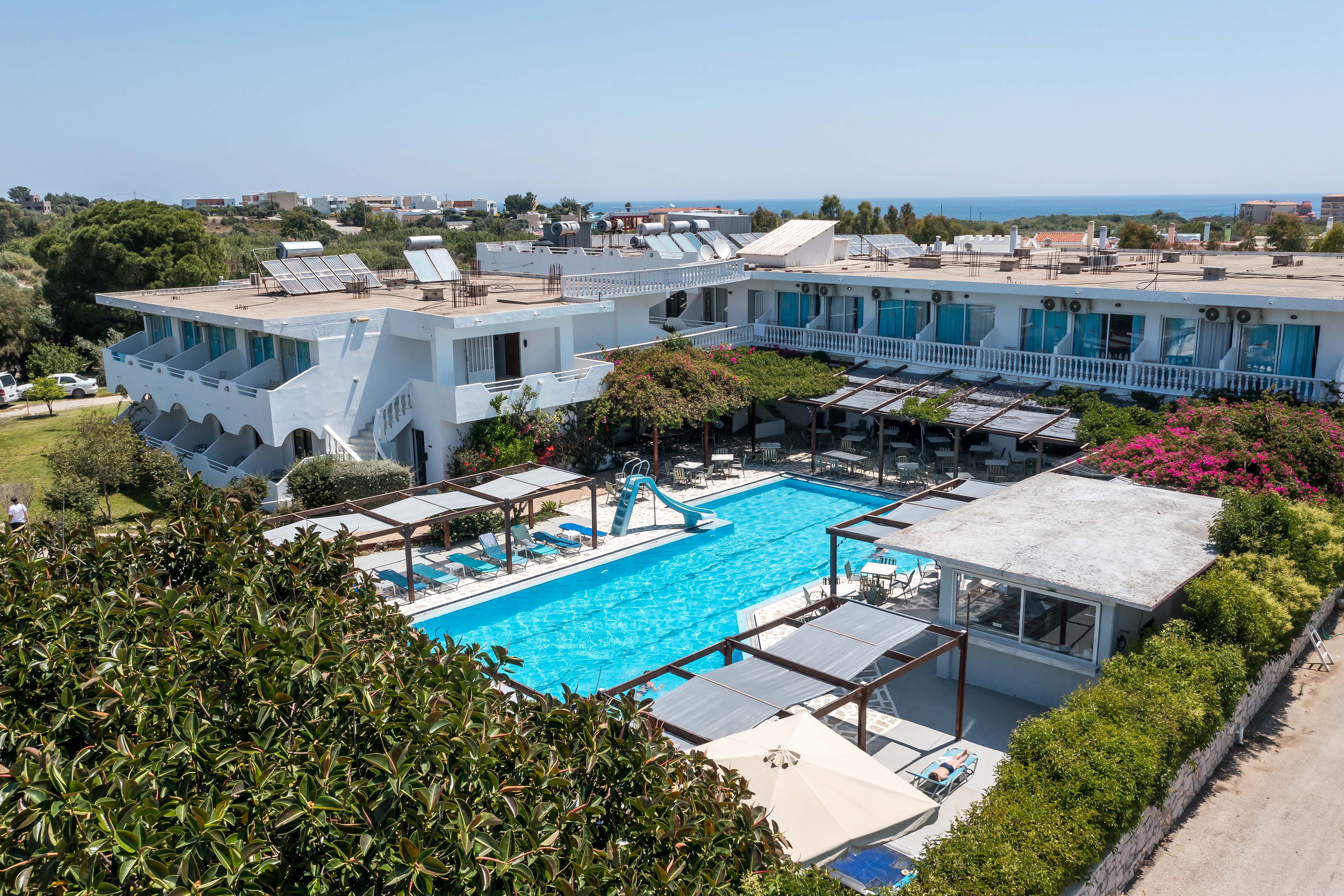 Omgivet av 10 000 m2 härliga gröna trädgårdar, är det bekväma Hotel Loutanis bekvämt beläget i det vackra området Kolymbia på den östra kusten av Rhodos, den största ön i Dodekaneserna. Det renoverade hotellet ligger 600 meter från den fantastiska stranden Afandou och 700 meter från stranden Kolymbia och erbjuder en kostnadsfri pendelservice till och från stranden Kolymbia. Centrala Kolymbia kan nås på en kort promenad. Detta hotell är ett utmärkt val för par och familjer med barn som letar efter en avkopplande semester under den grekiska solen. Dessutom finns biljetter till dagliga segelturer tillgängliga i hotellets reception. Gästerna kan utforska ön med bil och snabbt upptäcka dess charmiga stränder och klippor.