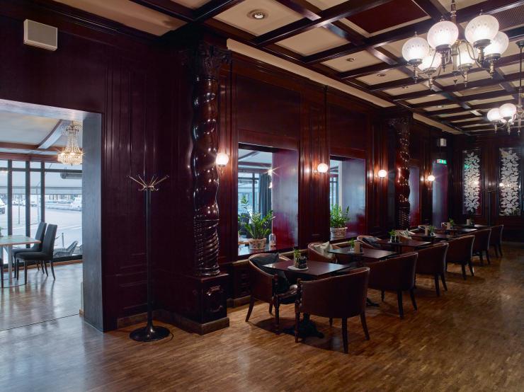 Hotellets restaurang serverar internationella rätter i elegant omgivning i en inglasad terrass. Den bekväma loungen erbjuder fin utsikt över Stortorget. Under sommarmånaderna kan du även äta och ta något att dricka utomhus.