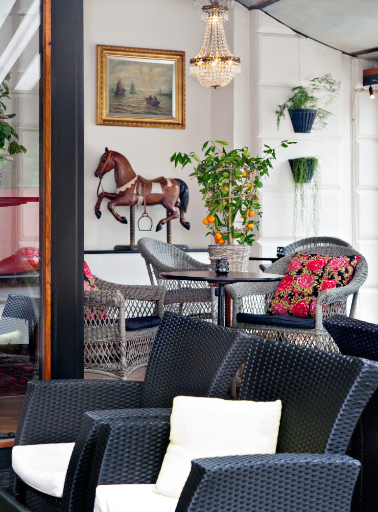 Rummen är rymliga och klassiskt inredda i svensk herrgårdsstil eller engelsk klubbstil.
