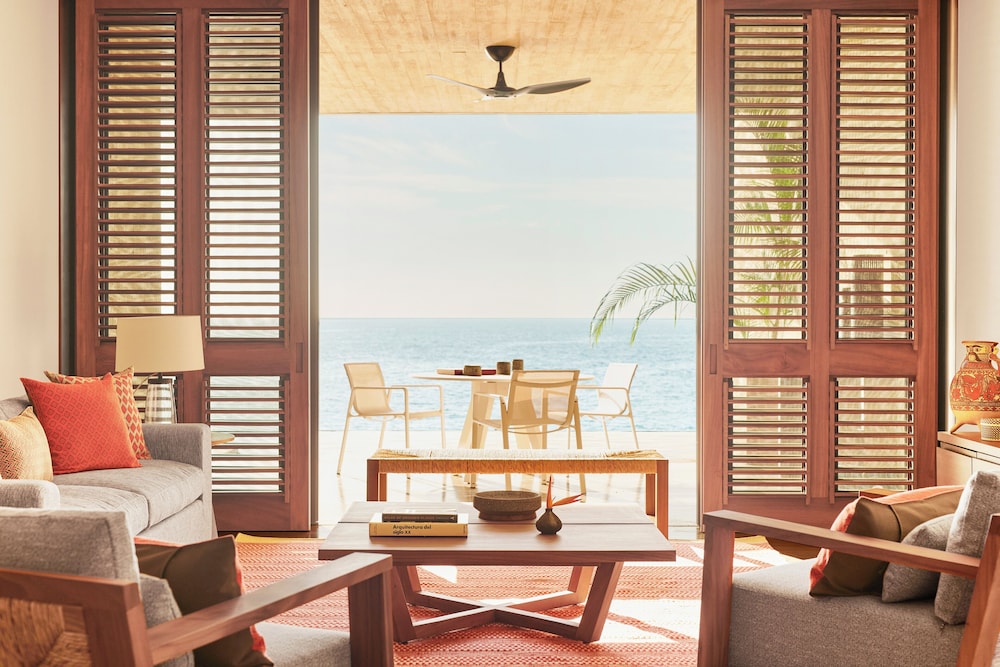 Four Seasons Resort Tamarindo ligger i La Manzanilla och placerar dig 37,3 km från Chamela-Cuixmala biosfärreservat och 45 km från Playa Careyes.  Detta hotell vid stranden ligger 47,6 km från Copa del Sol. Känn dig som hemma i ett av de 157 individuellt inredda rummen med iPads och iPod-dockningsstationer. Rummen har privata terrasser. Gratis fast internetanslutning och wi-fi. Underhållning erbjuds i form av en 65-tums smart-tv med kabelkanaler. Badrum med badkar och dusch, lyxtoalettartiklar och hårtorkar. Avstånd avrundas till närmsta decimal.