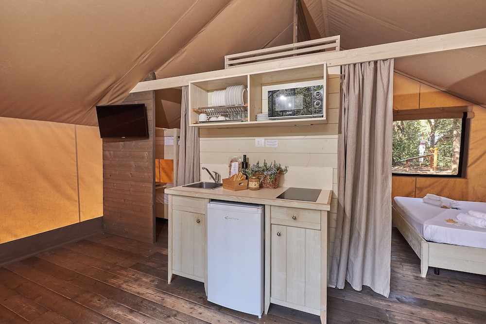 I Castagneto Carducci ligger Paradù EcoVillage &  Resort vid havet, en tio minuters bilfärd från både Costa dei Vini och Cavallino Matto (nöjesfält).  Detta boende vid stranden ligger 6,8 km från Azienda Agricola Fornacelle och 7,6 km från Bibbona Beach. Känn dig som hemma i ett av de 383 luftkonditionerade rummen som har pentry med kylskåp och spishäll. Rummen har privata inredda balkonger/terrasser. Gratis wi-fi ser till att du kan hålla dig uppkopplad, och en 32-tums LED-tv med digitalkanaler erbjuder all underhållning du behöver. På rummet finns värdeförvaringsskåp och skrivbord. Städning erbjuds dagligen. Avstånd avrundas till närmsta decimal.