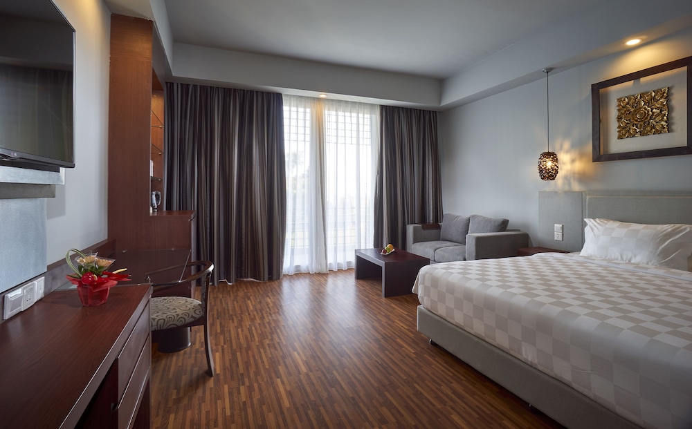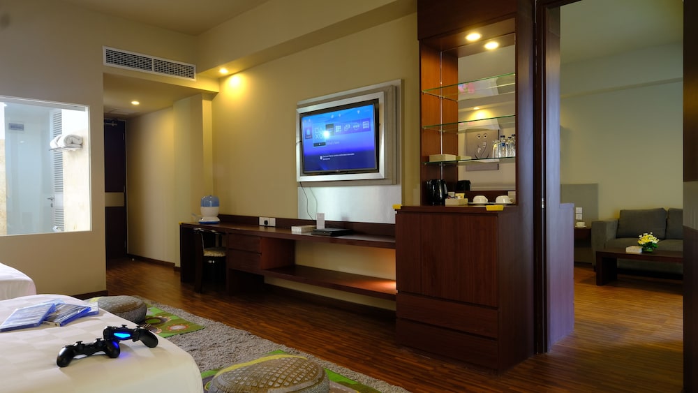 Gäster har tillgång till bland annat business-service, kemtvätt/tvättjänster och reception (öppen dygnet runt). Gäster erbjuds flygtransfer tur/retur mot en avgift (tillgänglig dygnet runt), och avgiftsfri parkering finns på plats. Här erbjuds många alternativ för fritidsaktiviteter, som bland annat gym, utomhuspool och hyrcyklar. Boendet har även gratis wi-fi, conciergetjänster och barnpassning mot en avgift. Ta dig en bit mat på The Barber, en av de 2 restauranger detta hotell ståtar med, eller stanna på rummet och nyttja dess rumsservice (under begränsade tider). Mindre måltider finns även på deras kafé. Avsluta dagen med en drink på boendets bar eller bar vid poolen. Frukost enligt egen beställning serveras dagligen mot en avgift från 07.00 till 11.00. I enlighet med lokala bestämmelser måste alla besökare stanna på boendet under det hinduiska nyårets dag av tystnad, Nyepi, under ett dygn (med start kl. 06.00). Nyepi infaller oftast i mars eller april (datumen ändras varje år). In- och utcheckning sker inte under detta dygn. Ngurah Rai Airport (Bali International Airport) är också stängd under Nyepi.- Avgift för frukost enligt egen beställning: IDR 85000 för vuxna och IDR 65000 för barn