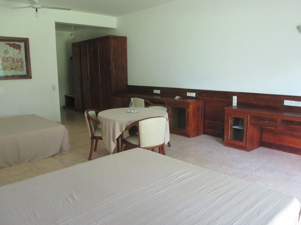 Gäster har tillgång till bland annat kemtvätt/tvättjänster, reception (öppen dygnet runt) och flerspråkig personal. Avgiftsfri parkering erbjuds på plats. Njut av utsikten från deras terrassen och trädgården, och dra nytta av deras gratis wi-fi. Boendet har även en tv i allmänt utrymme, hjälp med bokning av biljetter och guidade turer och cykelförvaring. Du kan beundra utsikten över trädgården och avnjuta din middag under bar himmel på Raja Beach Hotel, deras restaurang som specialiserar sig på lokala och internationella rätter. Föredrar du att ta det lugnt på rummet kan du beställa rumsservice (under begränsade tider). Släck törsten med din favoritdrink i boendets bar. Kontinental frukost serveras dagligen mot en avgift från 07.30 till 10.30.- Avgift för kontinental frukost: USD 4.60 för vuxna och USD 4 för barn